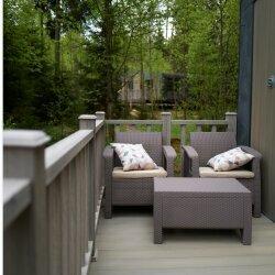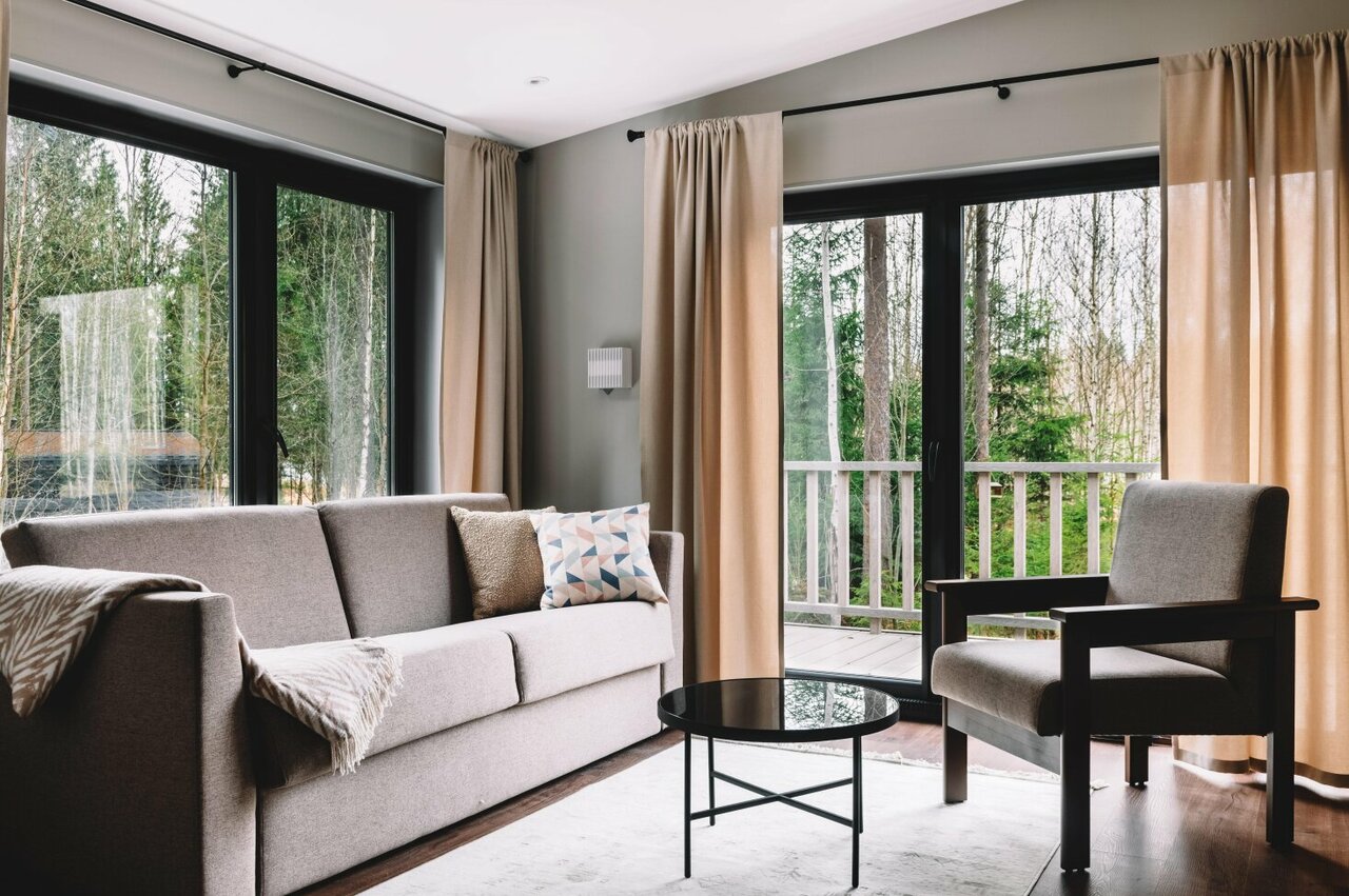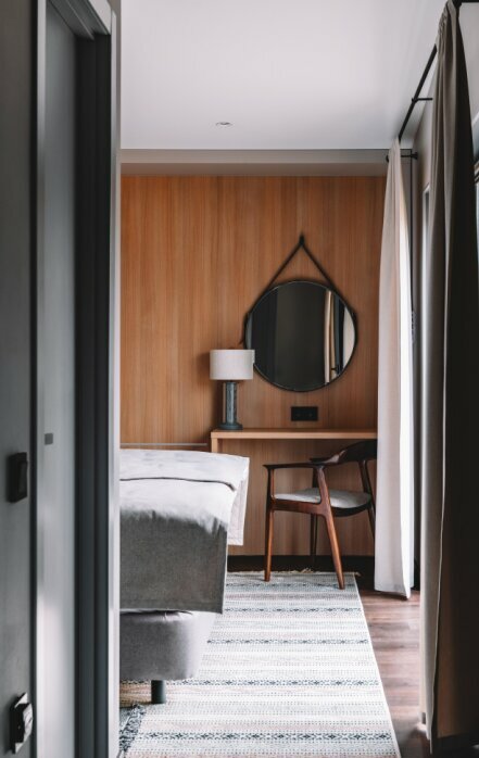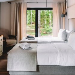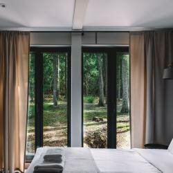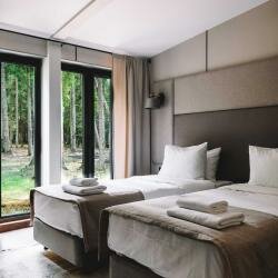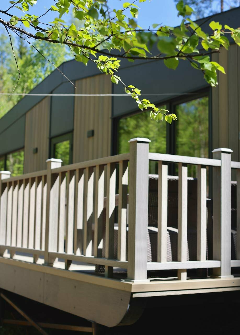 Отмечали здесь девичник, сняли отдельный домик с террасой, стоит полностью в лесу, очень круто) Отель новый, в домике классный сканди-ремонт, ничего лишнего и в то же время есть всё необходимое. Принесли по звонку дополнительные полотенца. Сотрудники вообще супер, очень приятно было общаться, клиентоориентированность на высоте. Домики стоят довольно далеко друг от друга, наша музыка ночной тусовки никому не мешала) Классный ресторан с видом на реку, вкусные салаты и горячее, пытаюсь дома повторить салат с куриной печенью, но так и не получается(