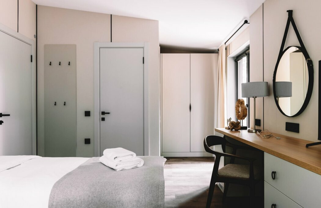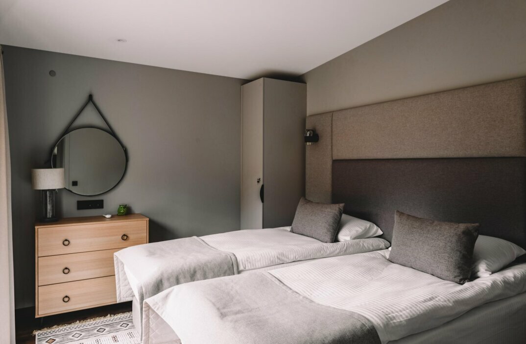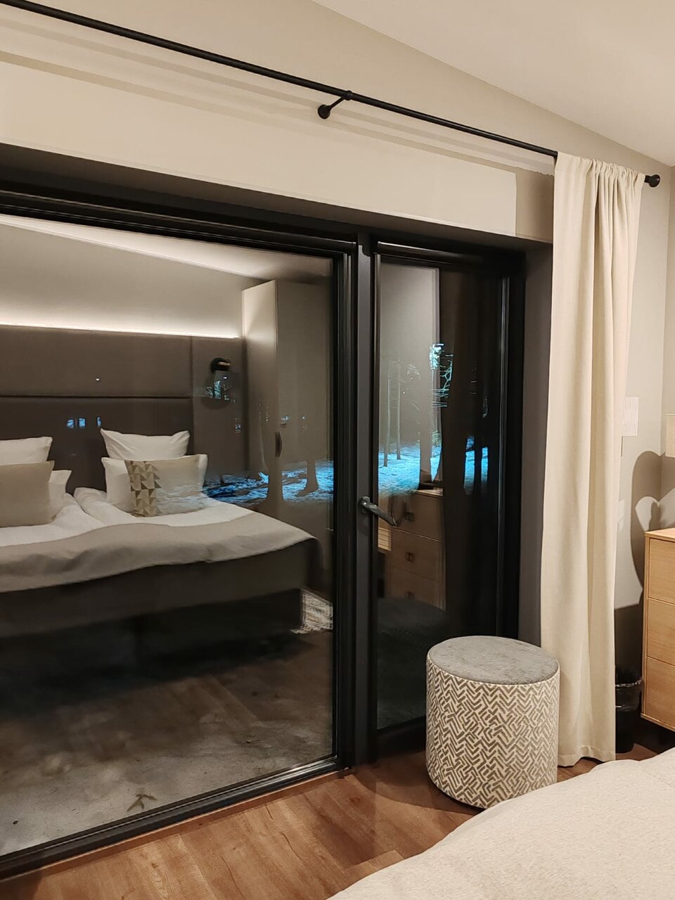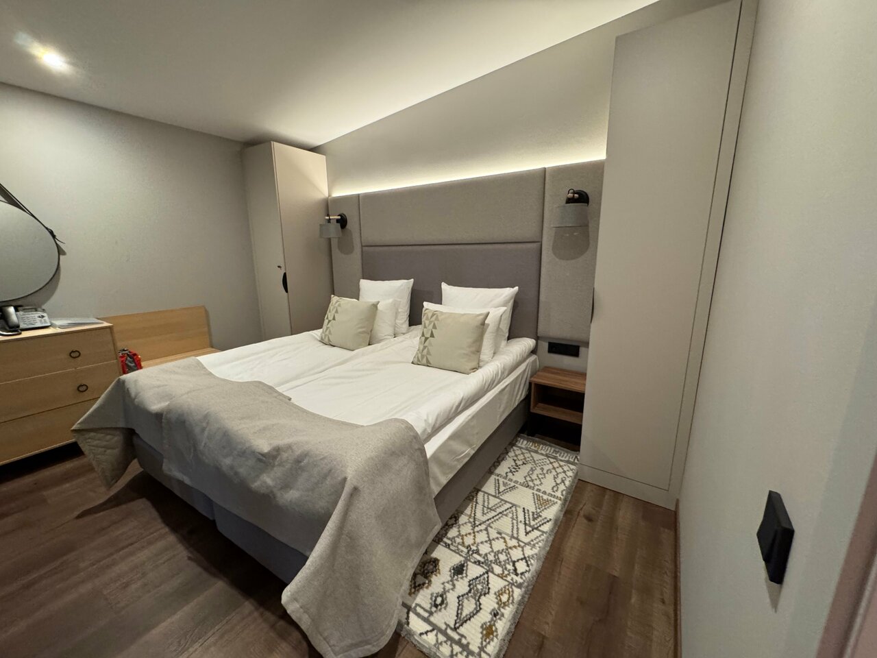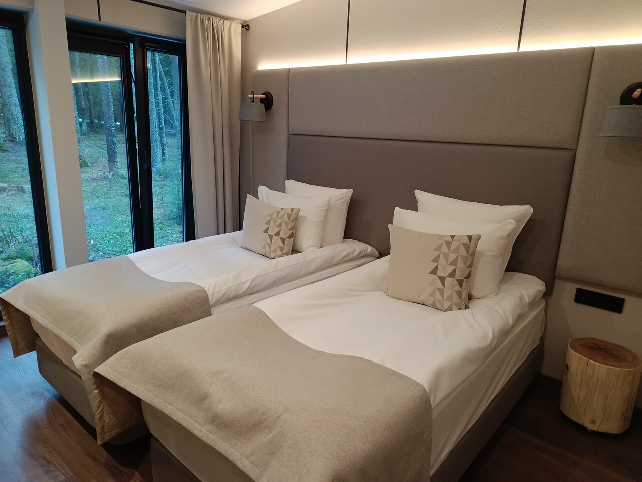 Отличный новый отель. Были в выходные одни во всем отеле. Удивительно. Номер очень уютный, чистый. Рекомендую, хотя и не очень дешево. Что не понравилось. Унизительная процедура приемки номера при выезде. Прямо назад в ссср. И несколько навязчивое гостеприимство в ресторане. Хочется поесть в тишине вдвоем. Но официант не давал скучать. Раз в несколько минут чем-то интересовался и пр. Нельзя придраться, но это чрезмерно. Понимаю, что кроме нас никого, но не надо так стараться.