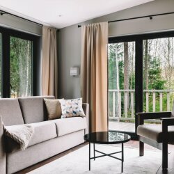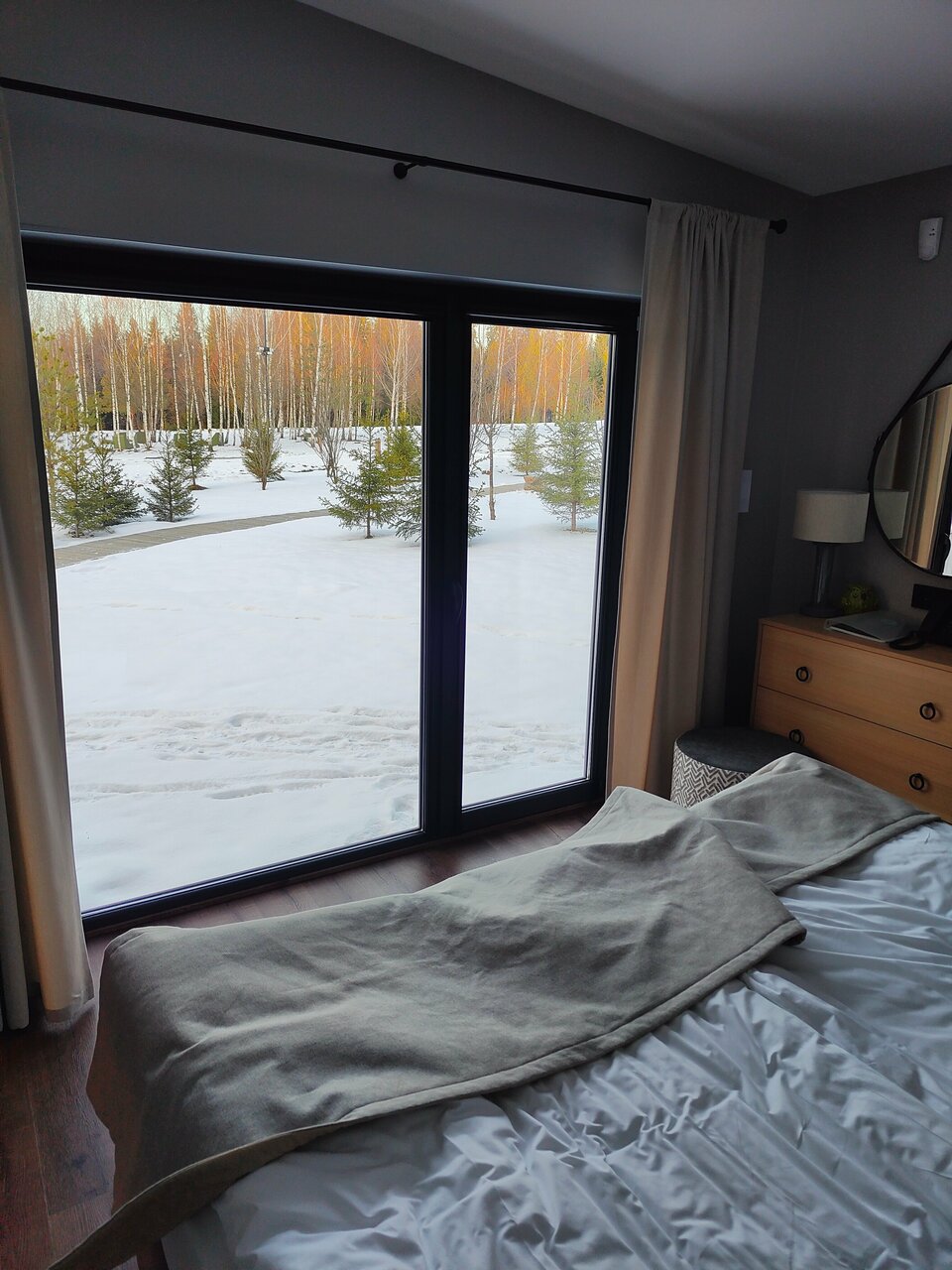 Выбирали отель для отдыха от бешеного ритма города. Думаю, что Нешалаши максимально подходит для релакса и единения с природой. Домик чистый, стильный, новый. Не смотря на то, что ночью температура опускалась до -15, было тепло. Понравилось внимание к пожарной безопасности. Везде огнетушители, в номере защитные маски, из каждой комнаты можно выйти на улицу. Понравился чан в лесу, было классно. Не смогла оценить территорию, так как погода позволила отправиться на прогулку по Истре. Это было прекрасно! Пляжная зона в процессе подготовки, песок завезли, дно начали чистить. Интересно, как будет выглядеть летом. Персонал внимательный. Сделайте пожалуйста завтрак до 12, будет вообще отлично!
