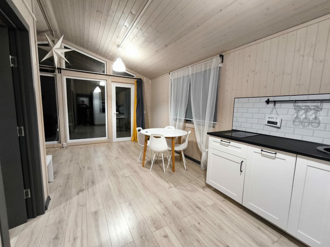 Очень классное и уютное место, потрясающий вид из окна, отличная кровать и прекрасно оборудованная кухня. Отдельно хотелось бы выделить хозяев, которые, зная, что будет холодно, заранее включили тёплые полы и нагрели дом.