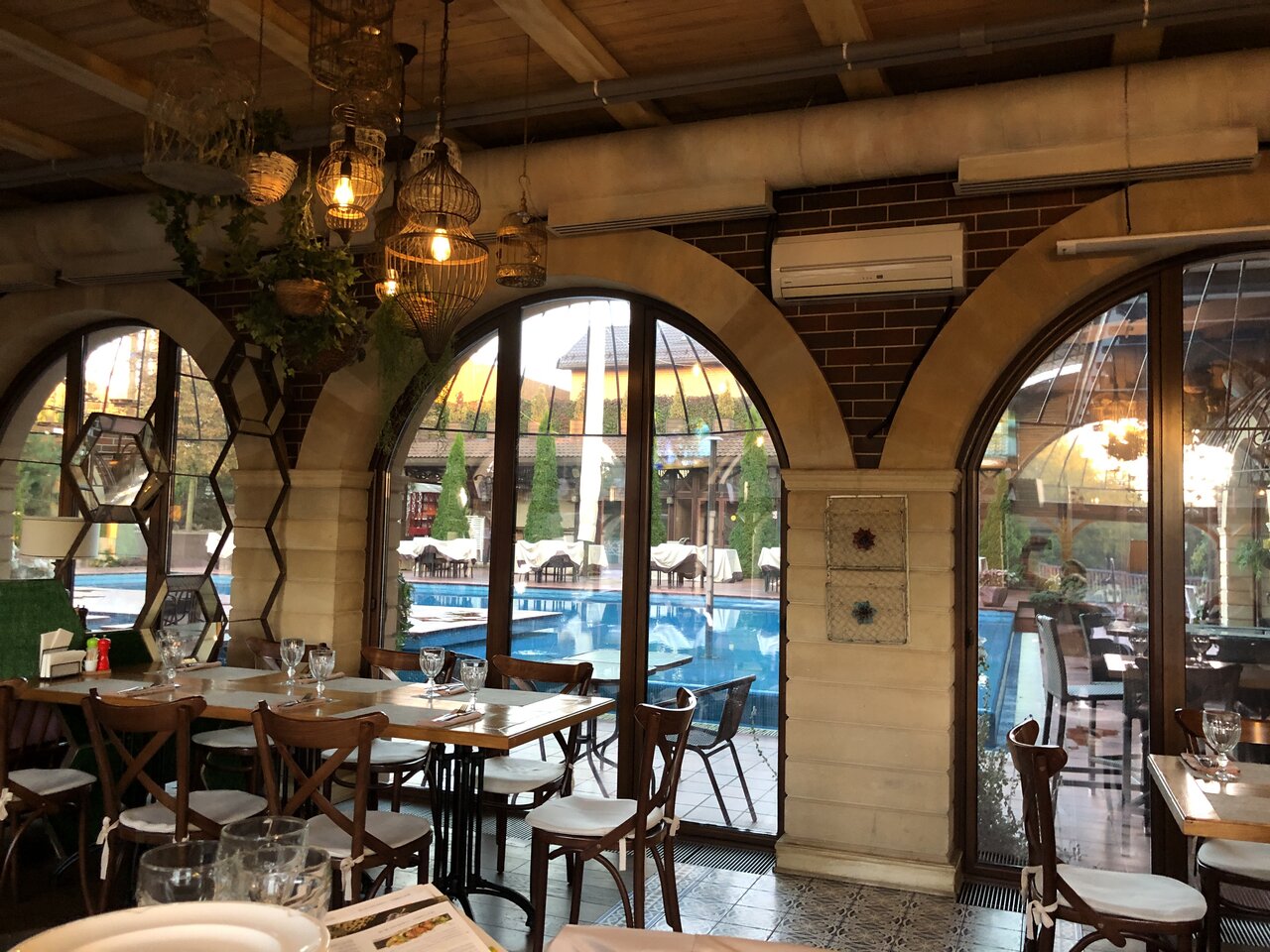 Хороший ресторан очень вкусная еда был на дне рождения моей подруге там хороший бассейн больше понравился верёвочный парк он очень похож на какой то паркур