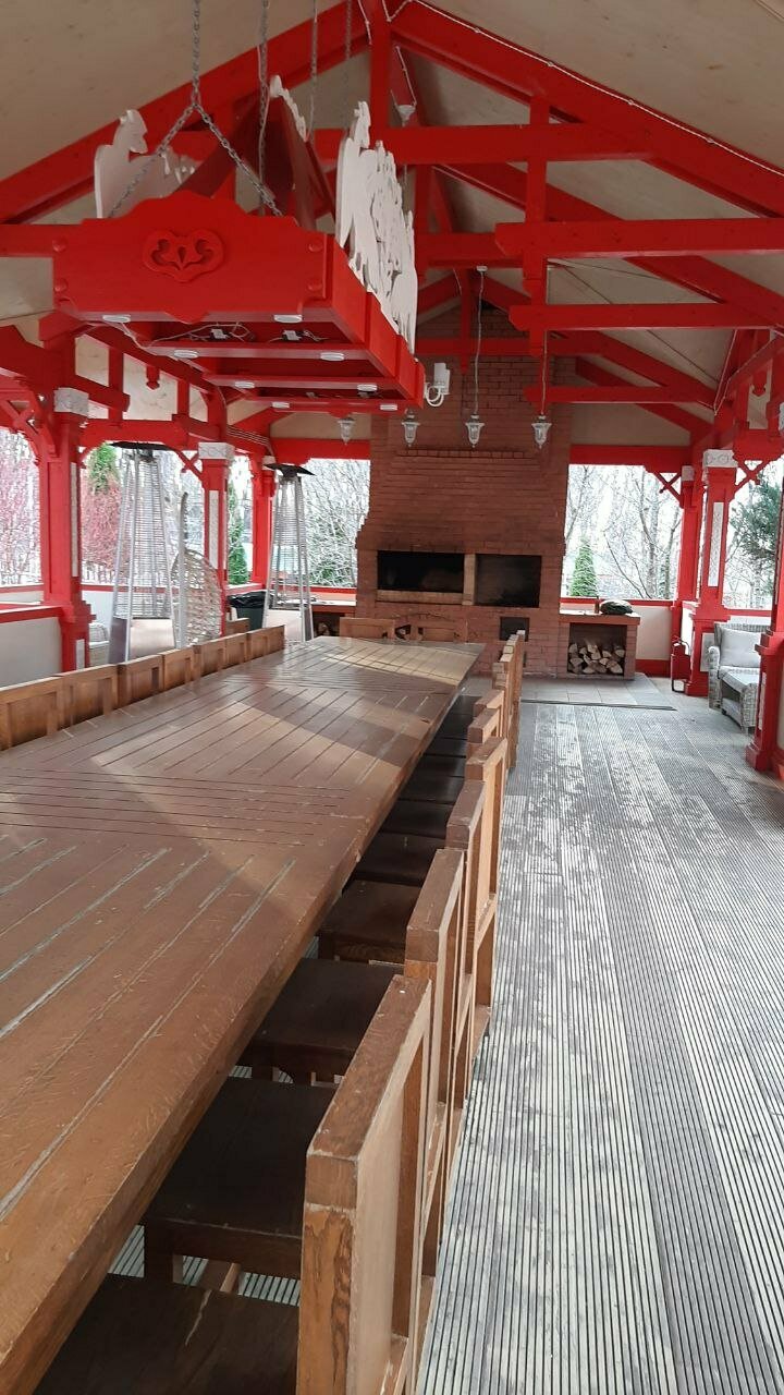 - Камин, уютные зоны отдыха.; Внимательный сервис, продуманные детали.; Бильярд, настольные игры, караоке.; Большие беседки, зона для шашлыка.; Ледогенератор.