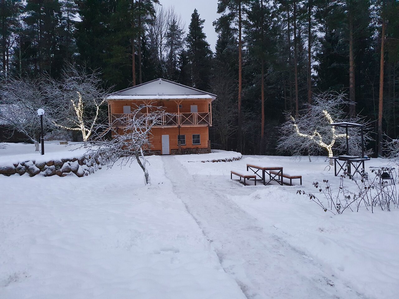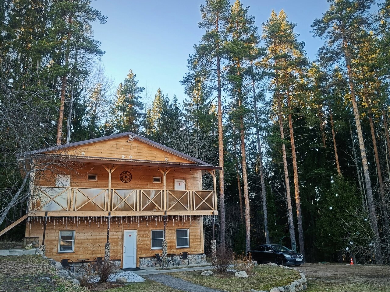 Отличное место. Комфортные номера, в каждом своя кухонька и санузел. Есть микроволновка и холодильник в каждом номере, на втором этаже электрокамины. Нет вайфая, но уверенно ловит 4G (хотя кто сюда поедет сидеть в интернете, не уверен, что это недостаток). Нет проблем с водой и канализацией, все комфортно и чисто. Ночью тихо и спокойно. Хозяева дружелюбные и приветливые. На территории беседка для летних посиделок, открытая зона с местом для костра, мангал, волейбольная площадка. Летом удобно загорать. Русская баня замечательная, в наличии веники и даже банные шапки. Расположение очень удобное — до города несколько километров, там же и ближайший магазин. Прекрасно отдохнули, всем крайне рекомендую!