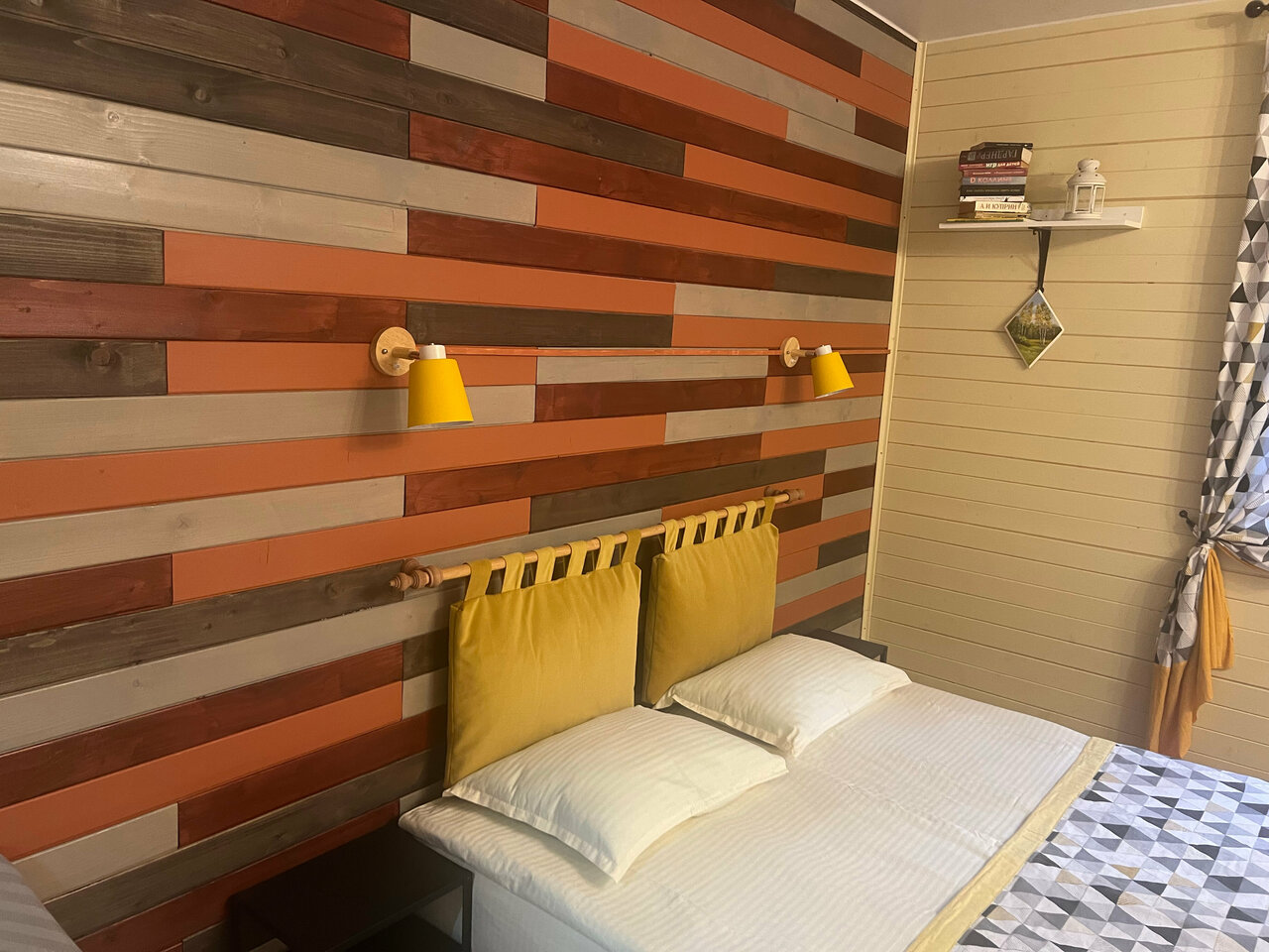 Спокойно, душевно, по-домашнему. Сам номер небольшой, но уютный. Две 1,5 кровати, поставленные рядом, раскладной диван. В итоге 4 спальных места (2+2). Белье чистое, полотенца в наличии, одноразовые шампуни и гели для душа. В номере небольшая кухня с плитой и малюсеньким холодильником))) электрокамин. У нас окна выходили на лес. На территории есть банька, экотропа, игровая площадка с батутом, дартсом, баскетбольным кольцом. Можно пешком дойти до озера. Берите с собой воду — из-под крана пить не рекомендуют, спасибо Наталье — одну бутылку оставила нам на кухне. Продукты тоже лучше с собой, на месте можно пожарить шашлыки. Отдельное спасибо хозяевам за вкусный завтрак. Нам все понравилось.