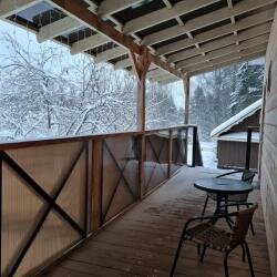 Понравилось абсолютно все! Очень уютный номер с камином, с обеденным столом. Все новенькое, чистое, аккуратное. Также есть кухня (с плитой, с раковиной, с чайником и всей посудой) Если не хочется готовить, хозяйка может накормить превосходным завтраком, обедом и ужином! Все домашнее, качественное. Вкусно и недорого. Очень вкусный чай в термосе. Вид из номера на лес. На участке есть горка, разный сезонный инвентарь, можно надолго занять ребенка. Есть хорошая банька, очень рекомендую!