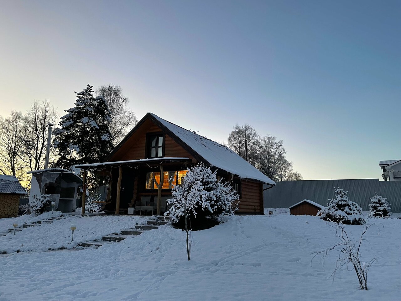 - Нет навеса во дворе (неудобно завтракать под солнцем).
