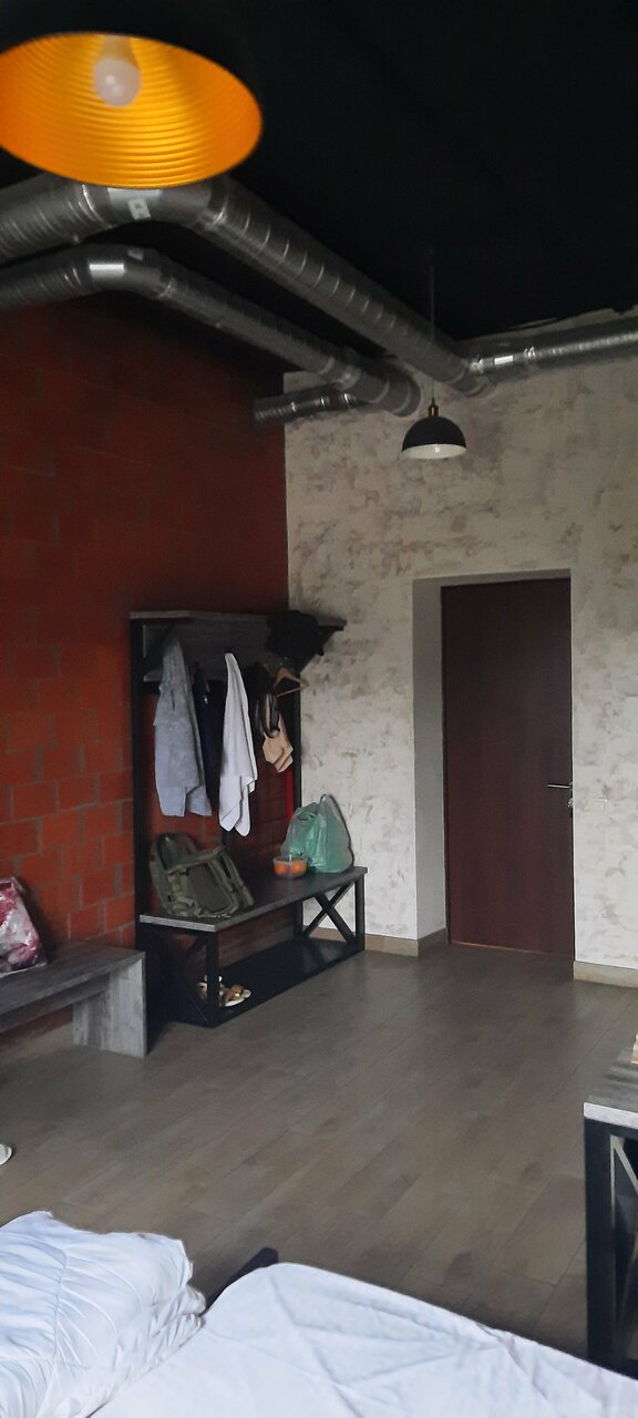 Очень уютно интересный стиль, свежие полотенца всегда свежие постельное уже заправленное, мне очень понравилось есть нюанс чайник только в коридоре один на всех.