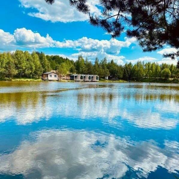 Хорошее место. В домиках панарамные окна, вид на озеро. Тихо и уютно. Очень приветливые хозяева. Ребята потихоньку расширябтся. Из минусов нет элементарной посуды, даже стаканов. И очень не хватала навеса в мангальной зоне и на балконе, целый день шёл дождь.