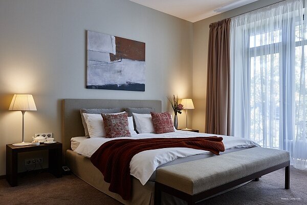 Номера комфортные. Удобно ходить между корпусами. Ужасный завтрак, обед и ужин. Непонятно, что хотели сделать. Концепцию ‘изысканных блюд’ в маленьких порциях на больших тарелках? Здесь нет изысканных блюд. Вы будете уходить голодный со стола утром, днем и вечером. Заказ алкоголя в баре, это отдельная песня. 690 руб. кружка пива 0,3. Стелла Артура. Про цены на крепкий алкоголь промолчу. Даже в Москве таких цен нет. Я понимаю, что времена сейчас тяжелые, но если вы себя позиционируете как luxuary hotel, то соответствуйте этому не только по красивой картинке.