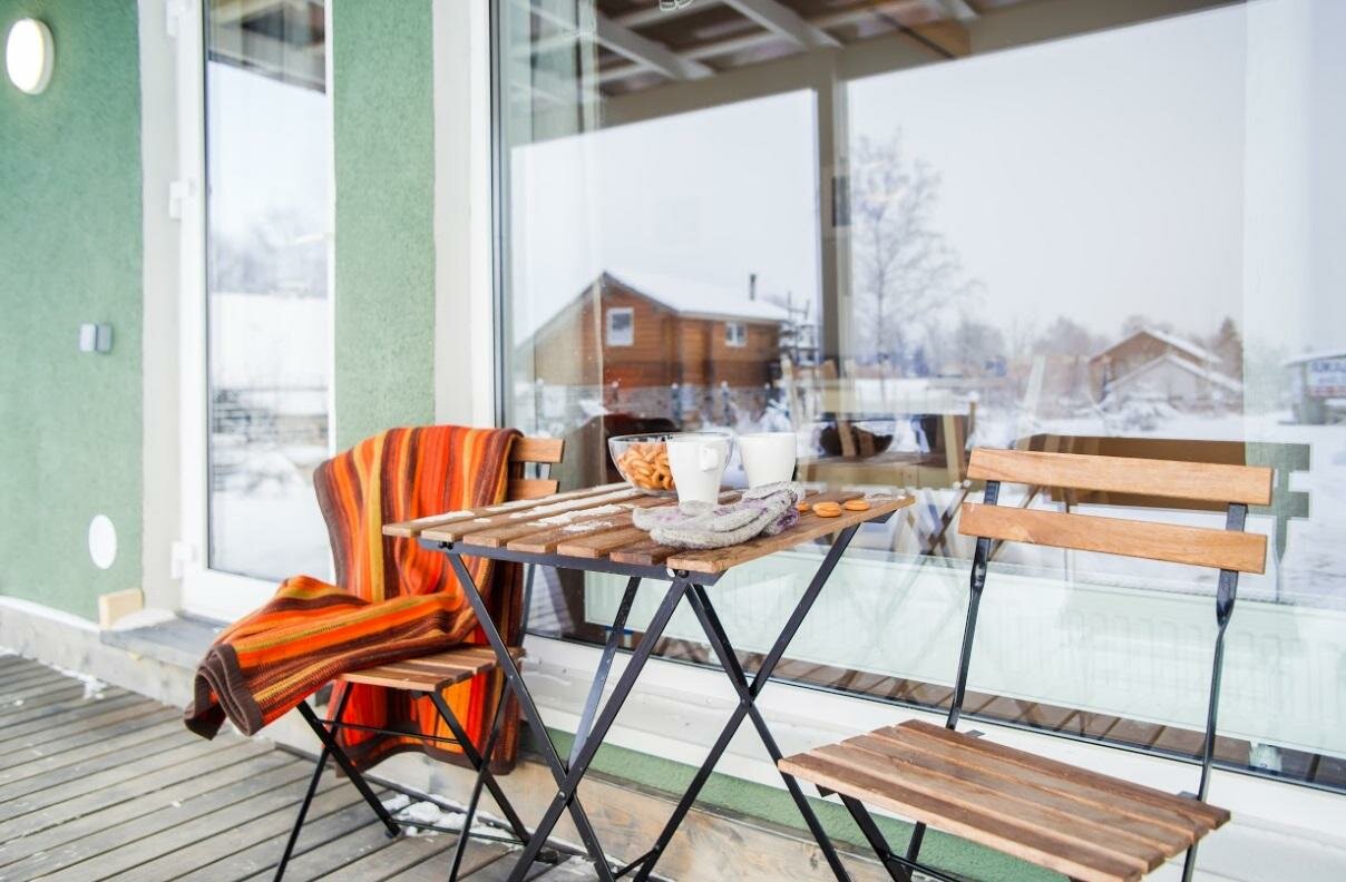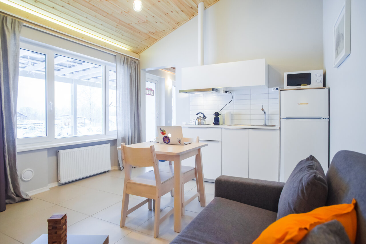 Когда на улице ноль и ниже — в домике уже прохладно. Прогревается медленно. В остальном все понравилось, все новое, чистое.
