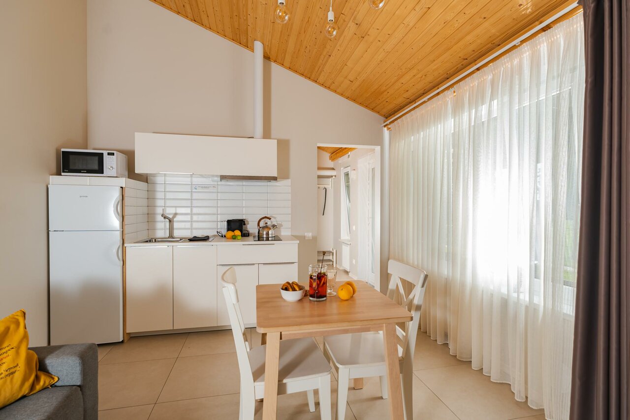 Расположена в деревне Светлое (Центральная ул., 33А). Открыта ежедневно с 09:00 до 21:00. Предлагает комфортные номера с Wi-Fi, кухонными уголками, звукоизоляцией и видами на природу.