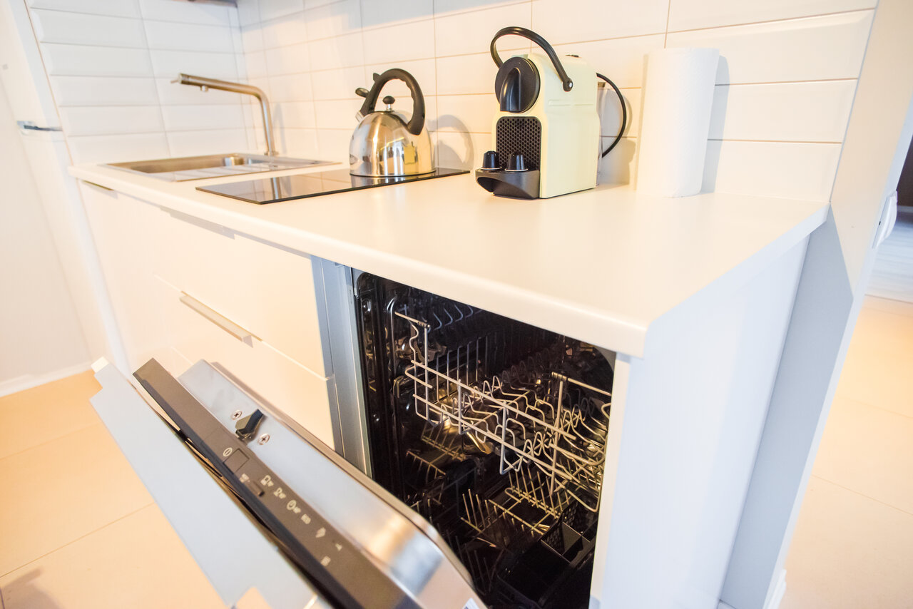 - Наличие посудомойки, кофемашины и другой необходимой техники.