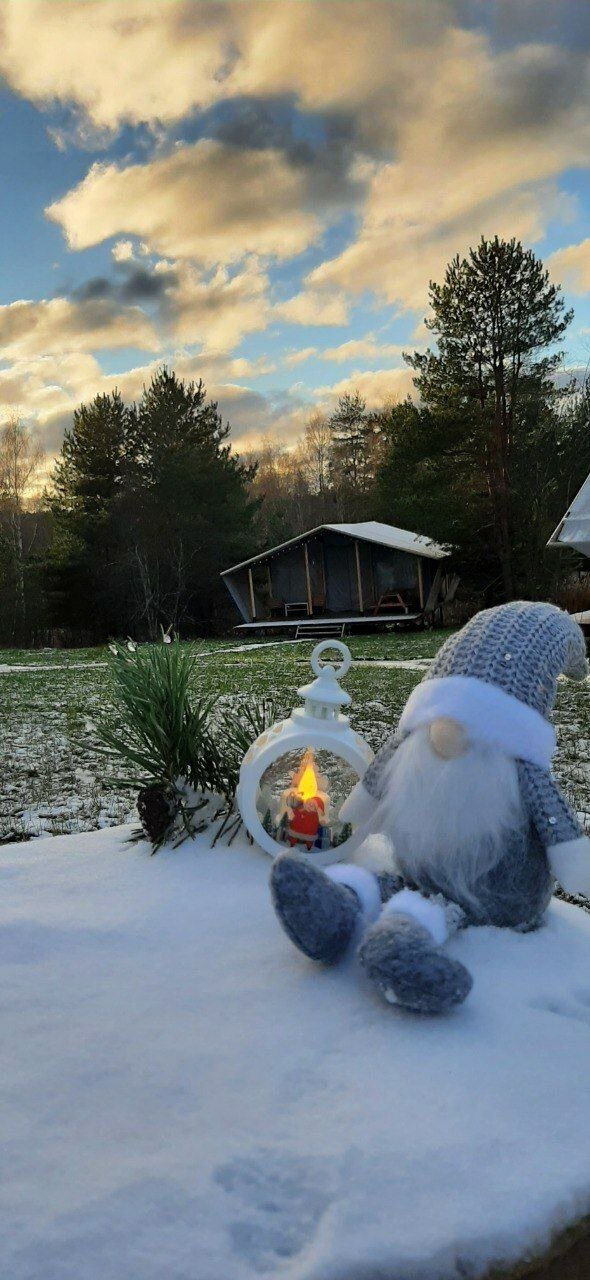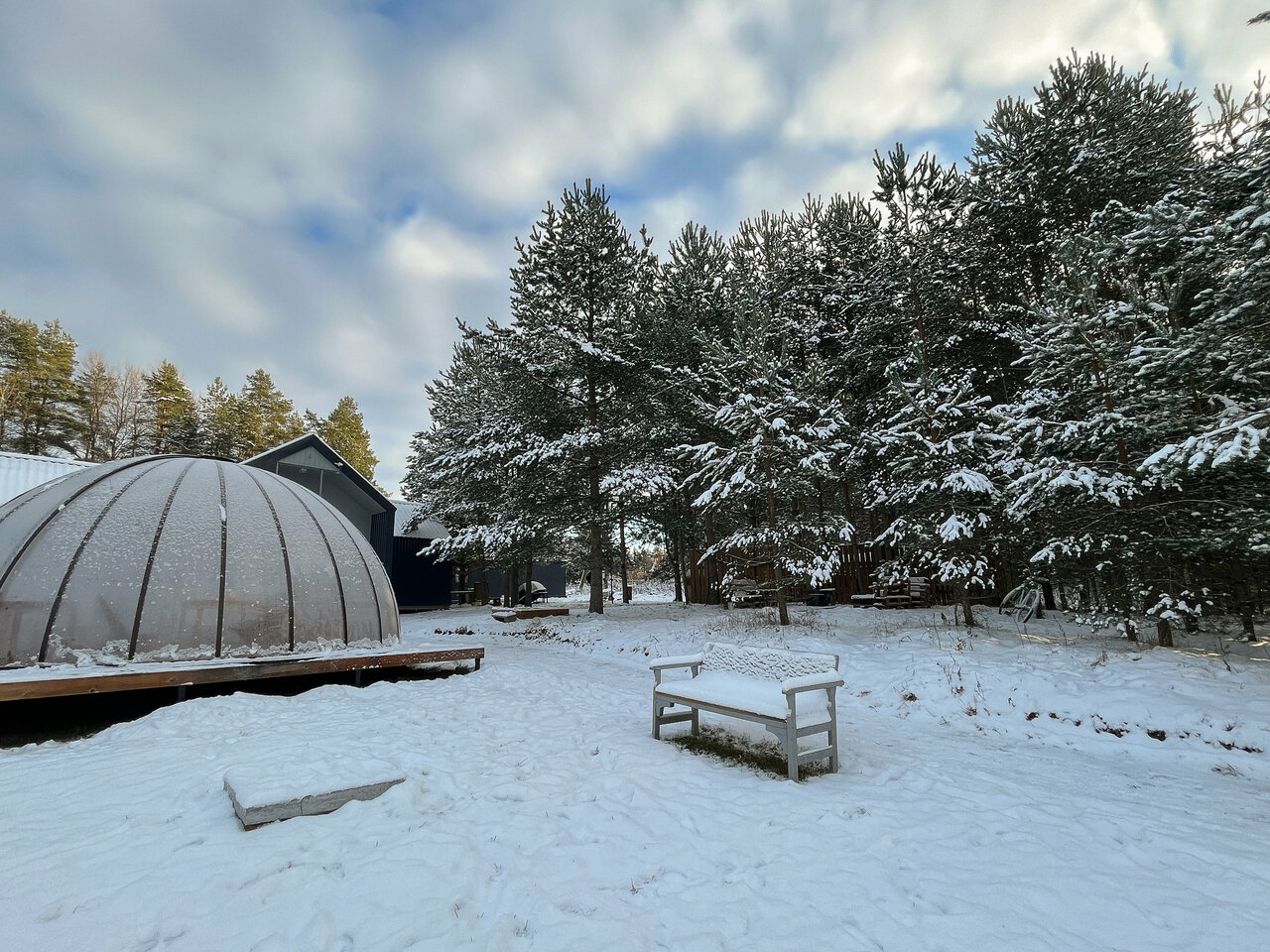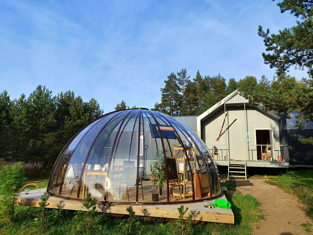 Очень милое место с немногочисленным, доброжелательным персоналом. Снимали фемнли-рум: теплый, комфортный , продуманный. Правда, пришлось повозиться, что бы закрыть окна. Но мы в палатках впервые. Баня просто прекрасна, особенно теплая купель ( похожая на большой котел, род которым горит огонь). Даже дождик не испортил банных удовольствий. Для любителей уединения хорошее место.