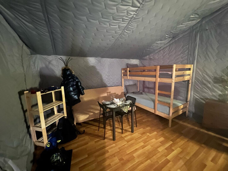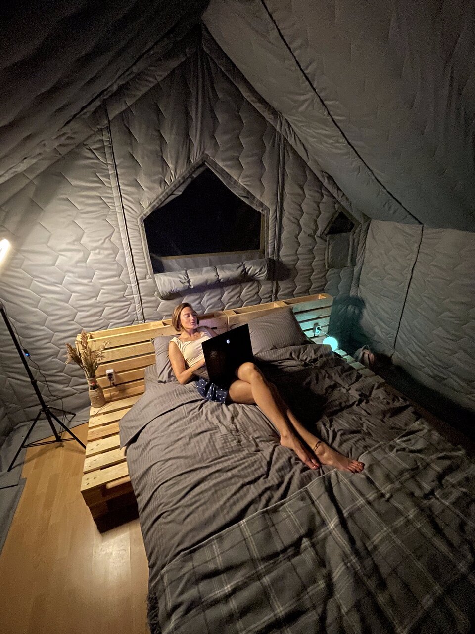 Шикарное место! Отдыхали с друзьями и остались полностью довольны! В палатке не холодно, работает подогрев пола. Кровати удобные)