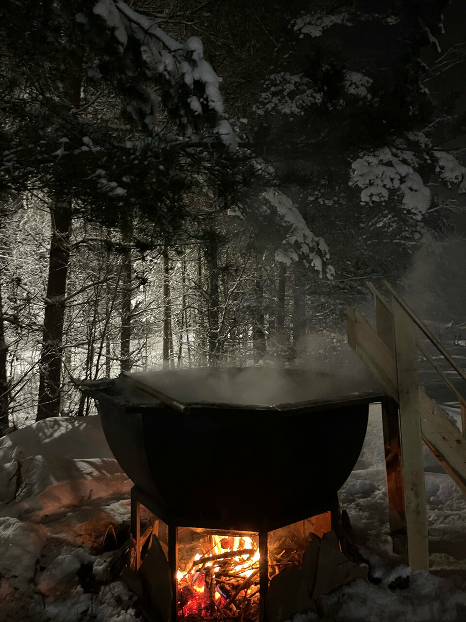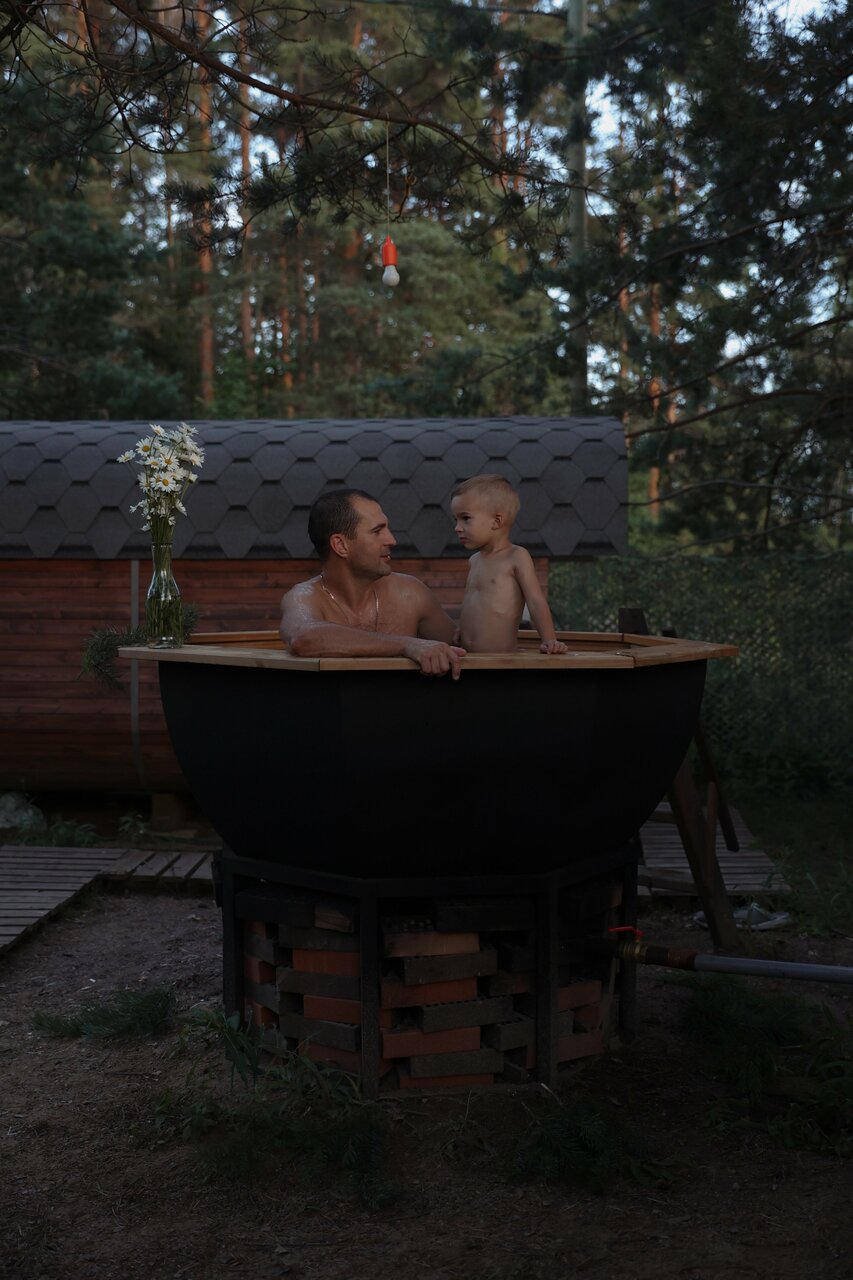 Чан можем заполнить горячей водой и поддерживать оптимальную температуру с помощью дров. А можем ледяной и тогда получится купель.