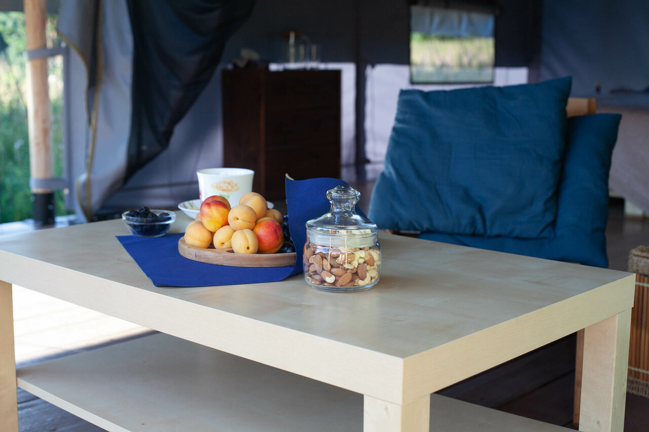 Плюсы: 1. Красивая природа. 2. Локация близко в городу. Минусы: 1. Уборка в тент-хаусе некачественная. Рваные шарики можно было бы и убрать. 2. Тапочки, пакетик чая, кофе 3 в 1, все по 50. Как правило, такое включено в стоимость. 3. Холодный тент для приема пищи. 4. Дорога разбитая, на низком автомобиле аккуратней. 5. Заказал горячий чан, в итоге в назначенное время стоял в плавках около холодного чана. От услуги отказался. Вывод: К сожалению, не могу рекомендовать к посещению.