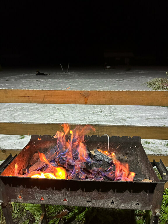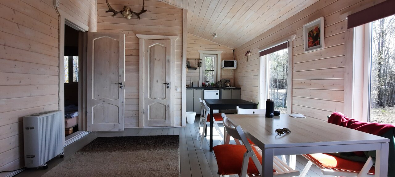 Если отведать мяса — огонь, берите, пробуйте, не пожалеете! Если снять домик — ну, это правда 3-ечка, сколоченны как будто наспех вкривь и вкось (без обид), сэкономлено на всем, такой походный вариант. Летом может быть еще и ничего, зимой так совсем грустно. Однако минимум посуды/спальных принадлежностей и даже неприкрепленный (и оттого сильно шатающийся) унитаз — имеются. Обстановка — в стиле сканди тоже, правда изрядно потрепанная (диван не выглядит чистым, например). Телевизора нет, вай фай есть.