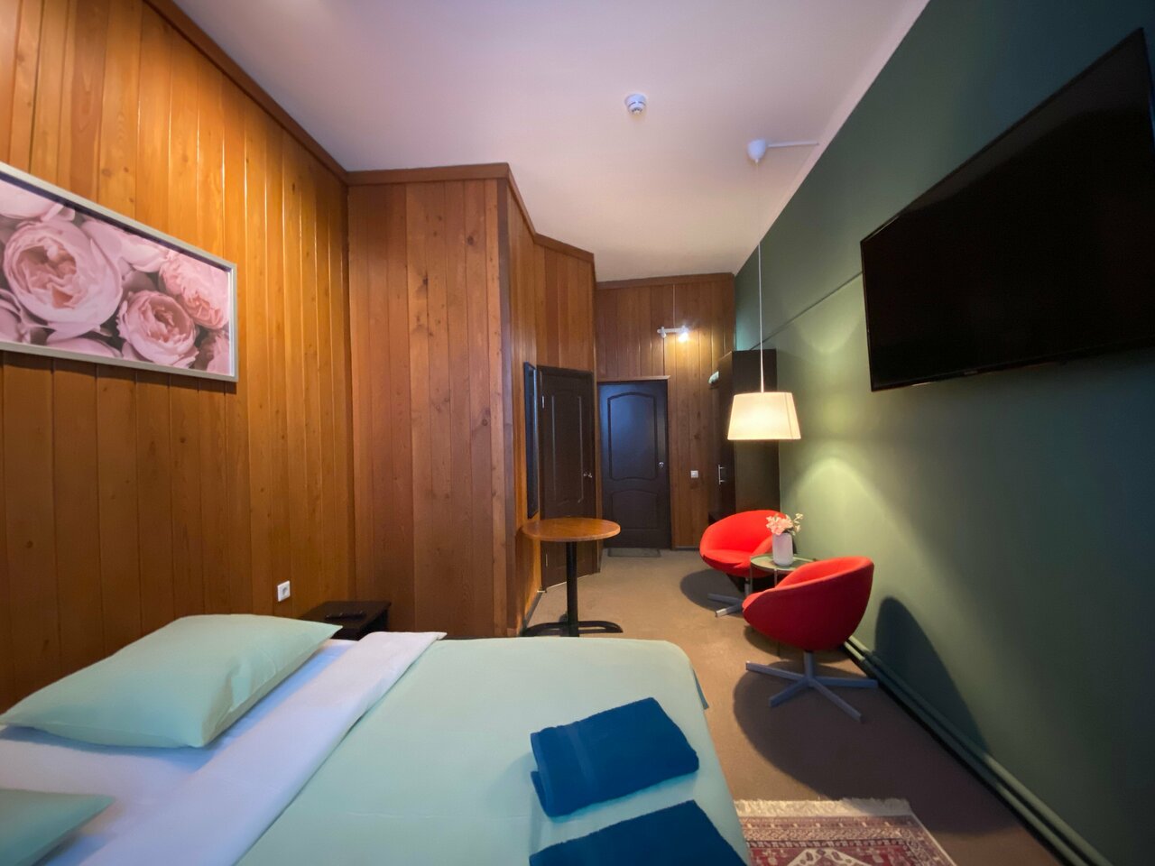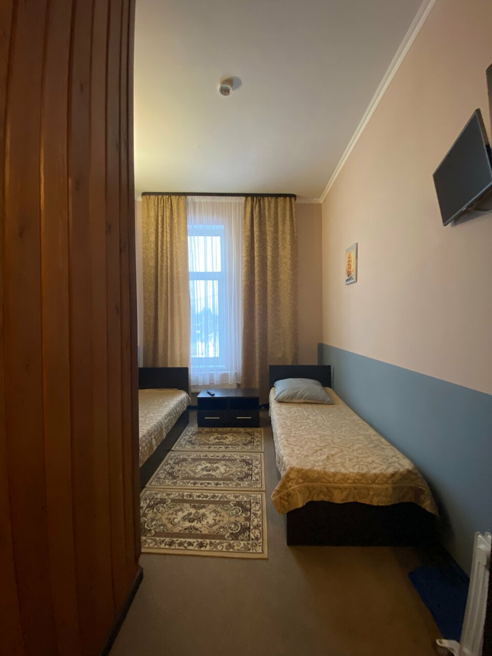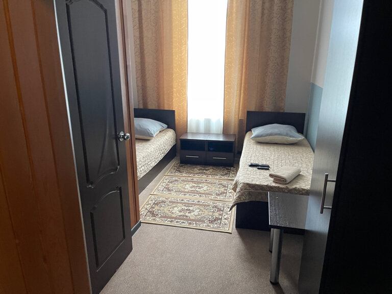 Ужасная гостиница! Очень хорошая слышимость, в соседнем номере мужик чихнул, я ему сказал будь здоров а он ответил спасибо, и голос никто, не надрывал. А когда военные привозят прституток, вся гостиница слушает порно. Помыться- не возможно, в душе нет напора воды, и перепады температуры воды- от кипятка до ледяной. Умывальник настолько мал, что, умыться- невозможно, вся вода летит на пол и на ноги. Открыть окно не возможно, под окнами находится вытяжная вентиляция кафе Чайхона и весь двм- прямо в номер и создаётся ощущение, что, шашлык жарили в номере. Единственные плюсы это наличие всей инфраструктуры в пешей доступности, и клининг- менеджеры которые делают уборку в номерах- ежедневно, меняют полотенца, а так же пытаются решить вопрос с нормализацией давления воды, в душе. Не сантехники, не админы, не владелец, а уборщицы, решают проблемы в душе. Категорически, не рекомендую!!!
