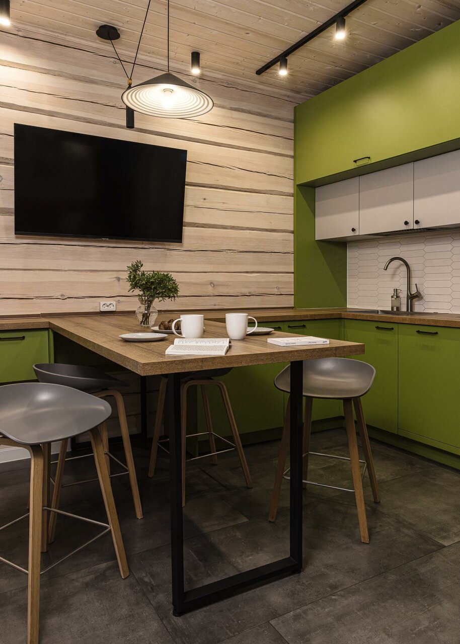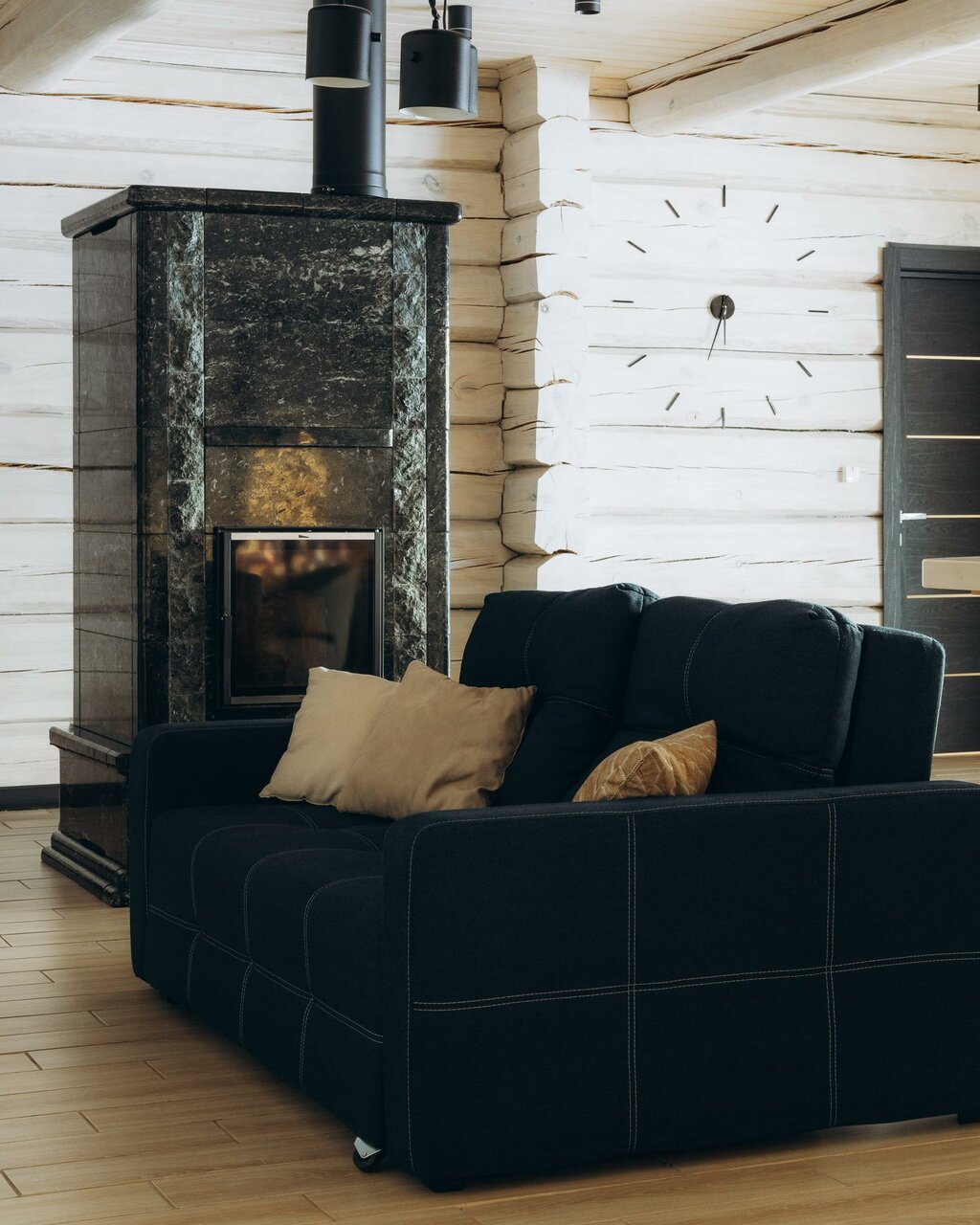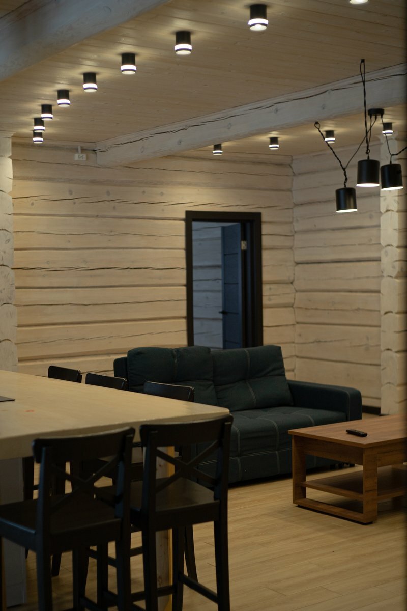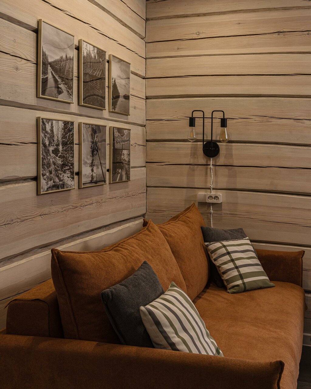 Дома из бруса с красивым интерьером, больше всего нам понравилась большая кухня-гостиная с кухонным островом, мы собирались вечерами всей компанией в 10 человек вокруг него, ужинали и смотрели в панорамное окно. Также понравился камин все в той же гостиной.