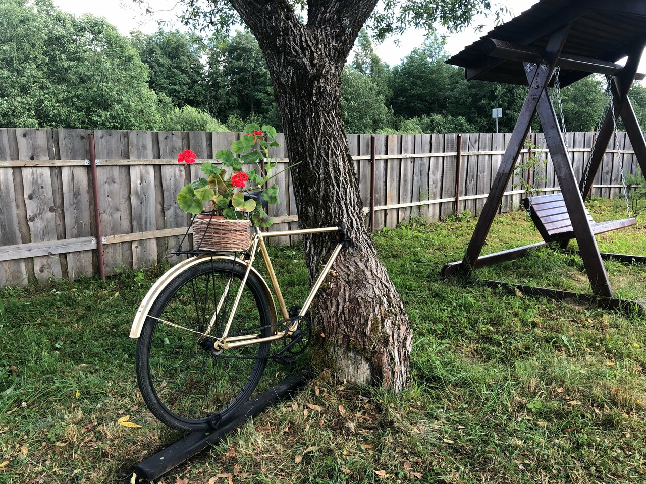 - Красивая территория (пруд, мостик, качели).