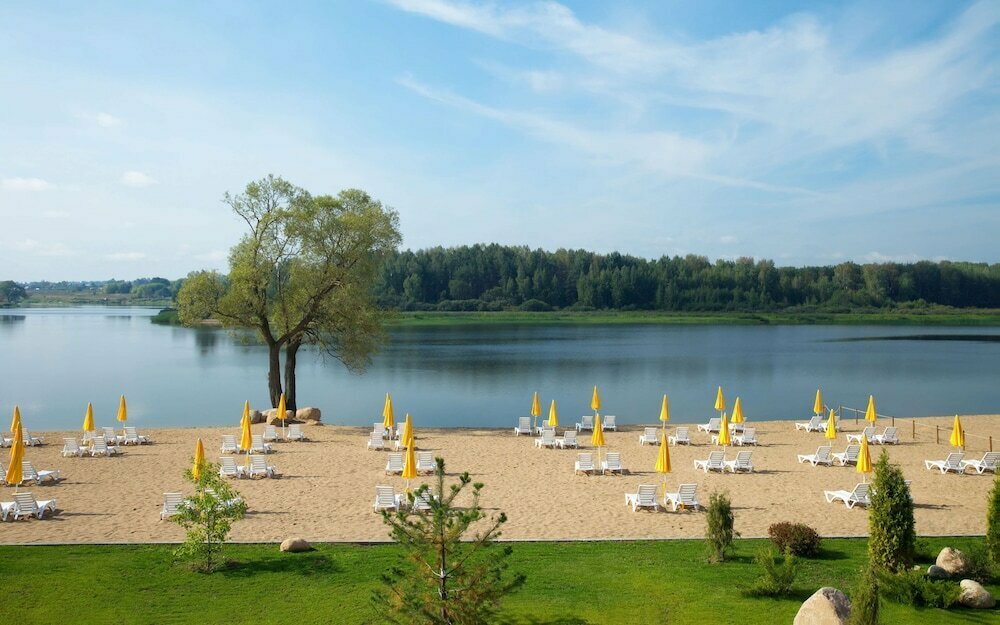 Приятное и красивое расположение, рядом водоем, обустроенный пляж, пирс, много развлечений (теннис, катера, вейкборд/серф, велосипеды и т.д.). Отель большой, несколько ресторанов, номера свежие, ухоженные и нормального размера. Персонал в целом достаточно приветливый. Большой минус, это регистрация заезда, ожидать минут 30-40 это вполне нормально, регистрация одного посетителя занимает минимум 10-15 минут. Недостаточно в выходные парковочных мест, а существующие слишком плотно друг другу прилегают. Соотношение цена-качество примерно на оценку 4,3-4,5.