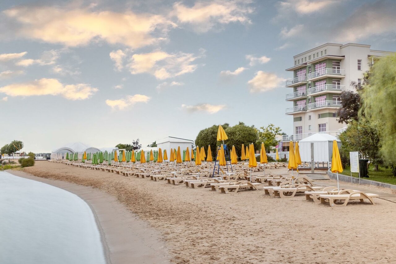 Особенности: собственный песчаный пляж, велопарковка, пандусы, услуги няни, камера хранения. Заезд — с 15:00, выезд — до 12:00.