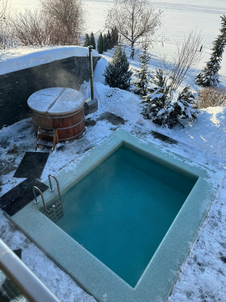 - Наличие теплого чана, ледяной купели, бассейна и доступа к реке.