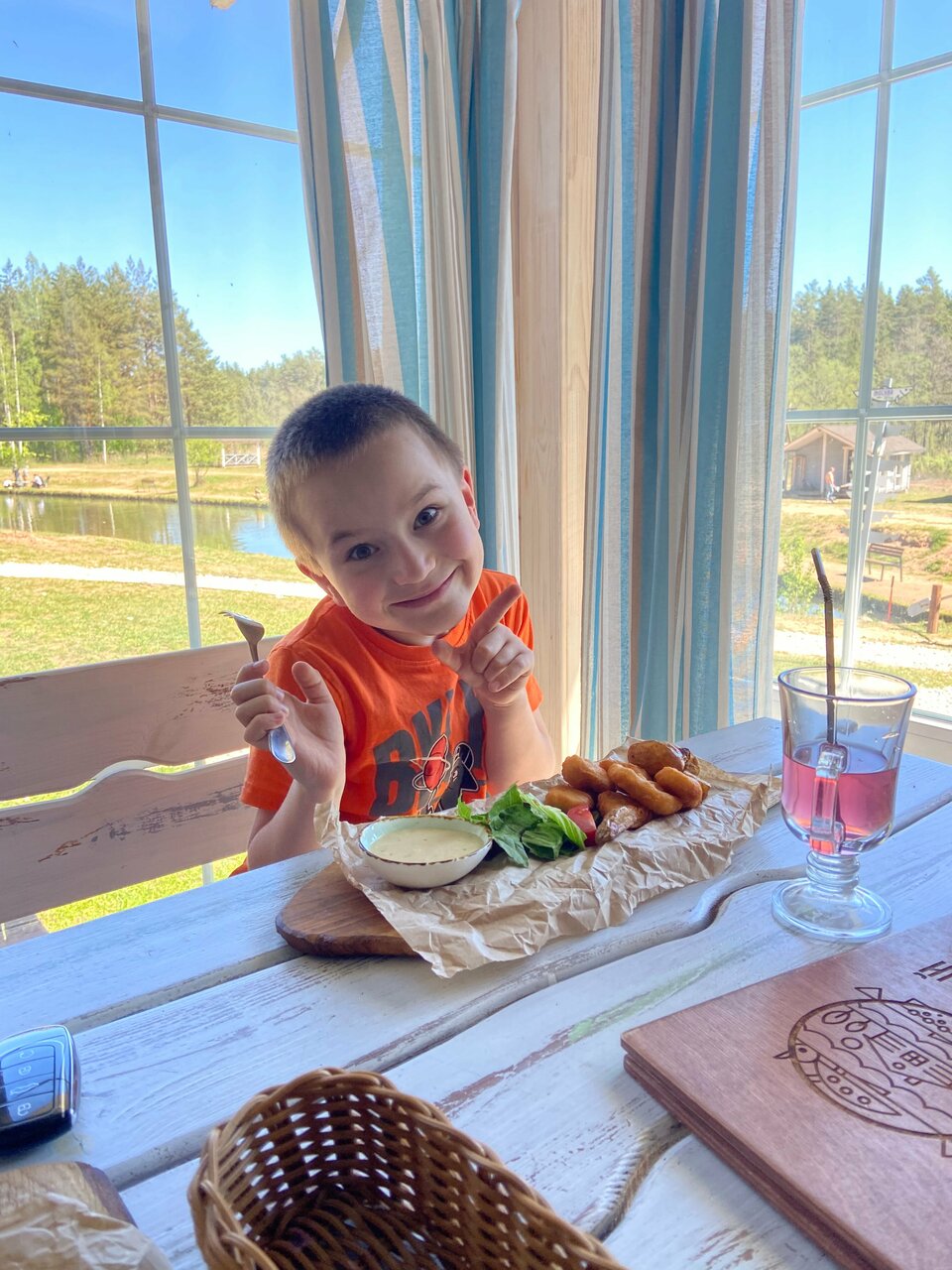 Само место необычное, много гостей, даже слишком много людей, ловят рыбку и коптят) Завтрак был там изумительный, но вот на ужин нам уже не повезло, почти ничего не было из меню( И даже то что заказали ждали два часа.