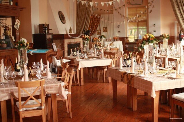 Приятный загородный отель под Серпуховом. Ресторан с работающим настоящим камином. Приятно пригласить гостей и самому пообедать.