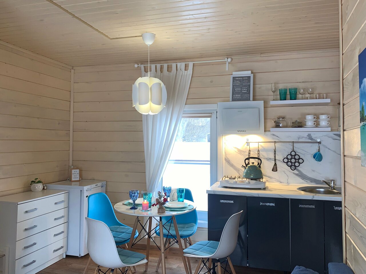 - Прогулки вдоль речки.; Продуманность до мелочей.; Возможность приготовить еду (посуда, микроволновка).; Удобная кровать.; Хорошее место для отдыха за городом.