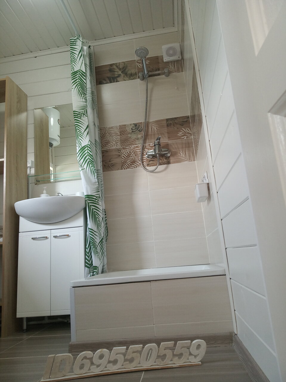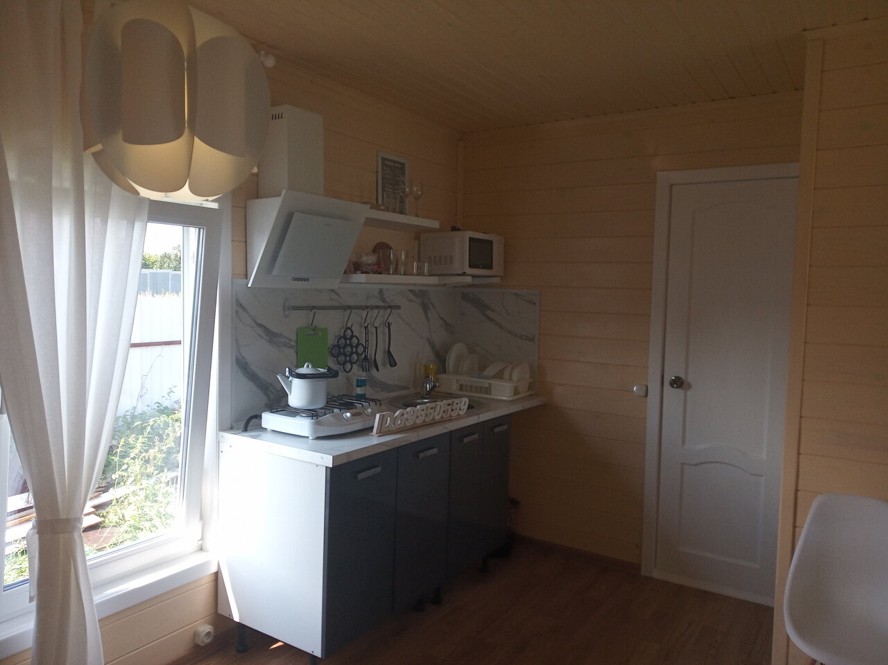 Отличный двухкомнатный дом. Все продуманно до мелочей. Огромная удобная кровать, чистое белоснежное белье. Около кровати есть розетка для зарядки телефона. В доме можно приготовить поесть, посуда. Микроволновка нам очень пригодилась. Были проездом. Если задержаться на пару дней, можно отлично провести время за городом. Пожарить шашлык, погулять вдоль речки.