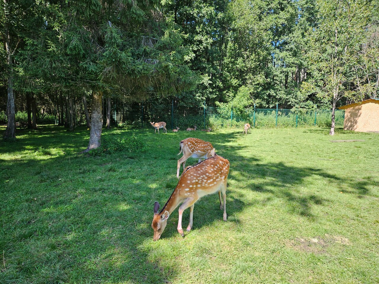 Хорошее место для знакомства с дикими и лесными животными. В стоимость билета зоопарка входит корм, плюс контактный зоопарк. Рядом ресторан, пляж, домики для отдыха. Пешеходная тропа по мостику сквозь весь парк (не рекомендую в сильную жару из-за комаров и насекомых, кто любит тогда берите с собой спрей от насекомых). Рядом Ж/д станция. Из минусов чуть далековато и редкие электрички.