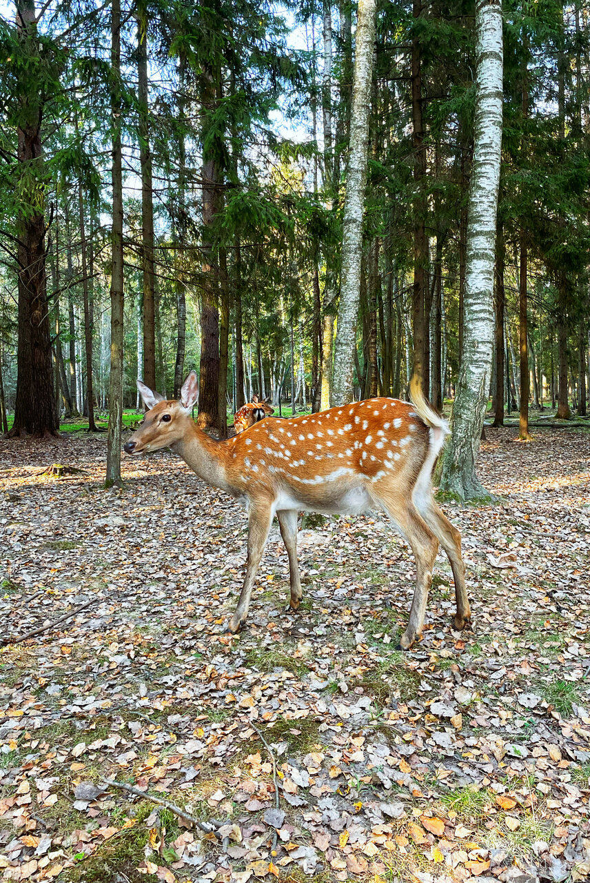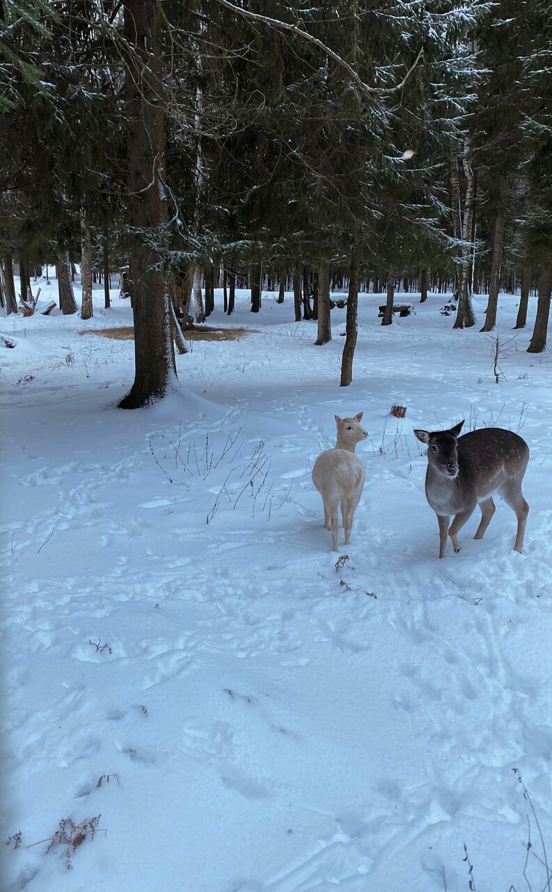 Прекрасное место чтобы убежать из шумного города. Ухоженная территория, которая включает в себя усадьбу, а также домики для проживания и кафе; ферма, большая часть территории отведена оленям их можно покормить и сделать красивые фото, корм выдается бесплатно; тропа Бродского.