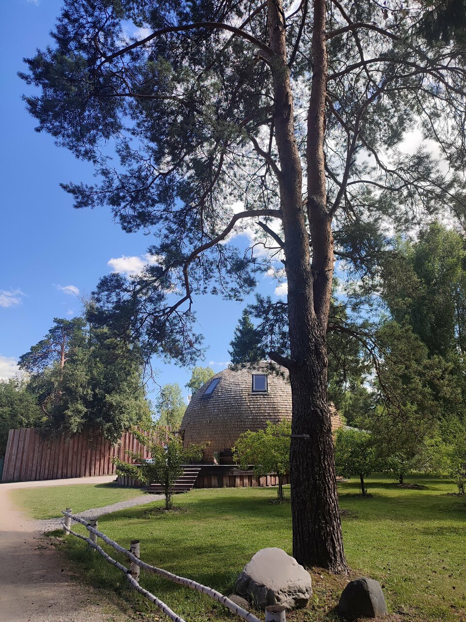 Прекрасное уютное место для прогулок и отдыха, прогулялись по территории и по пляжу, фотографировались с необычными и забавными арт-объектами, все ухожено, чисто, атмосфера домашняя, одновременно окунающая в прошлое, но и отлично осовремененная. И самое главное, за чем мы ехали, это контактный зоопарк с оленями, их много и маленьких и взрослых, они живут на большой открытой территории, ухоженные, красивые, покупаете билет за 1000 рублей на человека, выдают пакетики с морковкой, капустой, можно заходить в вольер к оленям и кормить их, только осторожно, они вырывают целые пакетики из рук сразу, может не остаться корма на других. Советую взять с собой из дома еще дополнительно капусту) Время посещения оленей не ограничено. У нас впечатлений хватило на год, до сих пор вспоминаем, пересматриваем видео. Обязательно приедем еще