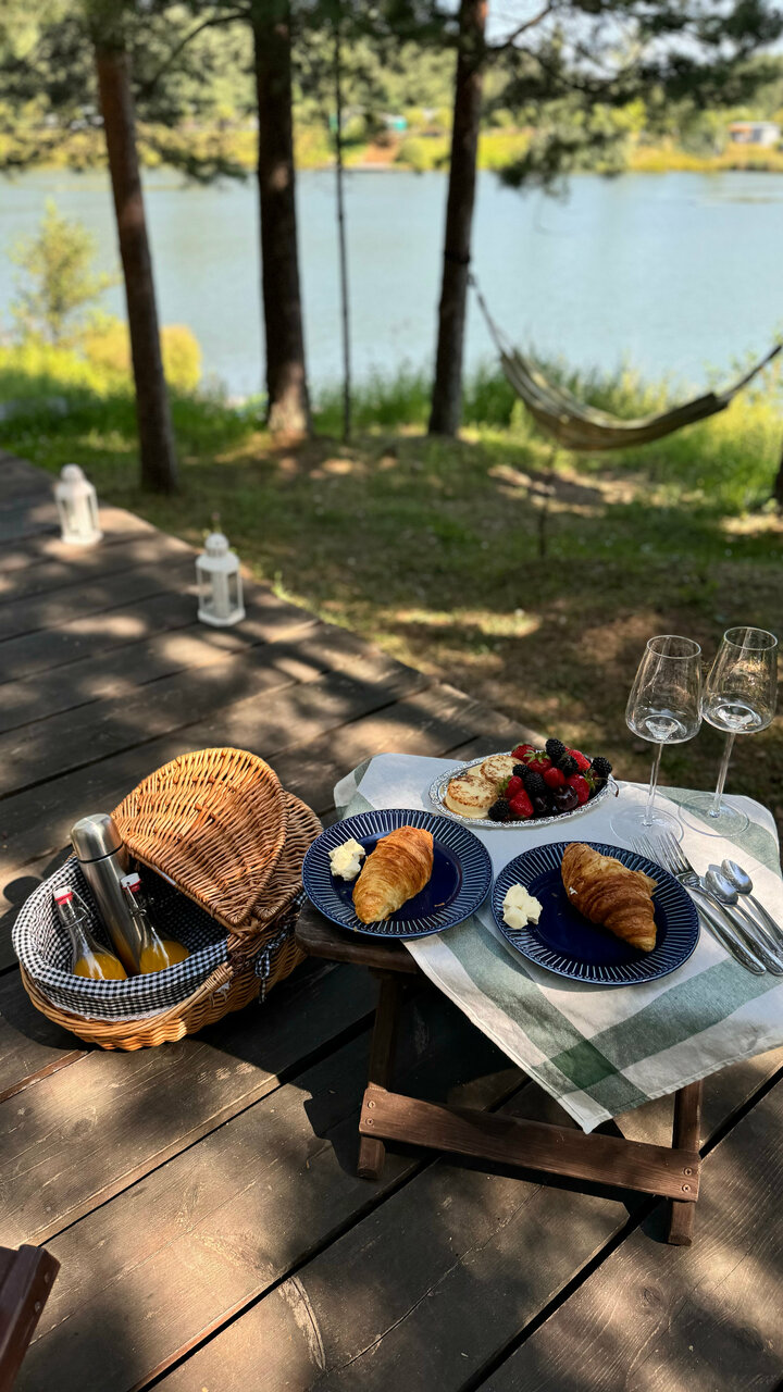 Очень очень крутое и уютное место ! Спасибо за теплый прием ) Но !!! Снимали домик в лесу . Приехали на на машине. Очень много не продуманных вещей . Минусы: в медном домике , нет микроволновки, нет никакой посуды кроме кружек и ложек с вилками . Питьевая вода ТОЛЬКО в кулере на втором этаже ресторана . если ты едешь с какими то своими продуктами, ты должен ходить из домика по всей территории до домика Пионеров, где есть одна микроволновка на всех . Странность. Отдать за 4 дня 60к, не иметь банально в номере питьевой воды и посуды с микроволновой печью, ну для меня загадка . Видимо подразумевает что ты должен есть только в местном ресторане . Не продуманно . В остальном все отлично .