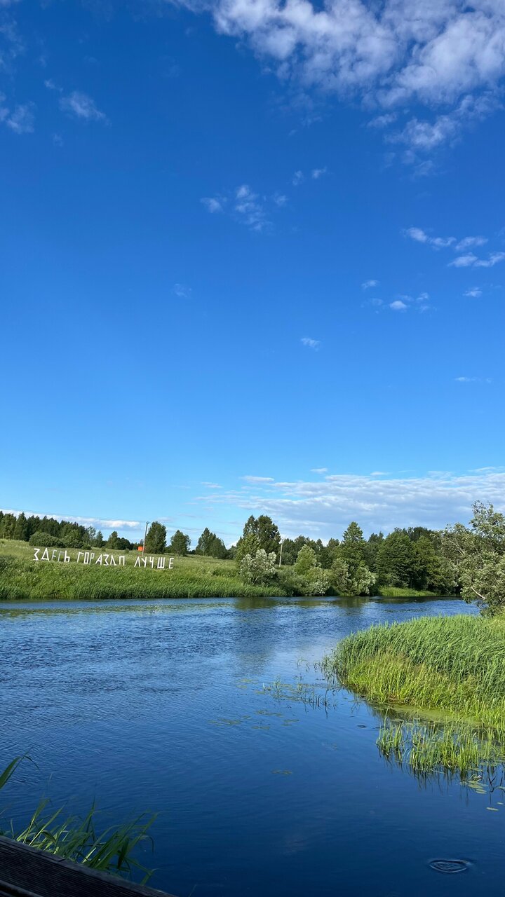 Прекрасное место для отдыха для всей семьи. Живописное место на берегу реки. Для детей интересно покормить животных, зимой горки, в летом прекрасный отдых у озера: рыбалка и купание. На территории прекрасная баня и места для шашлыков. В ресторане очень вкусная еда и прекрасное обслуживание. Арт-объекты очень просты и удобны в использовании (прекрасные библиотеки).