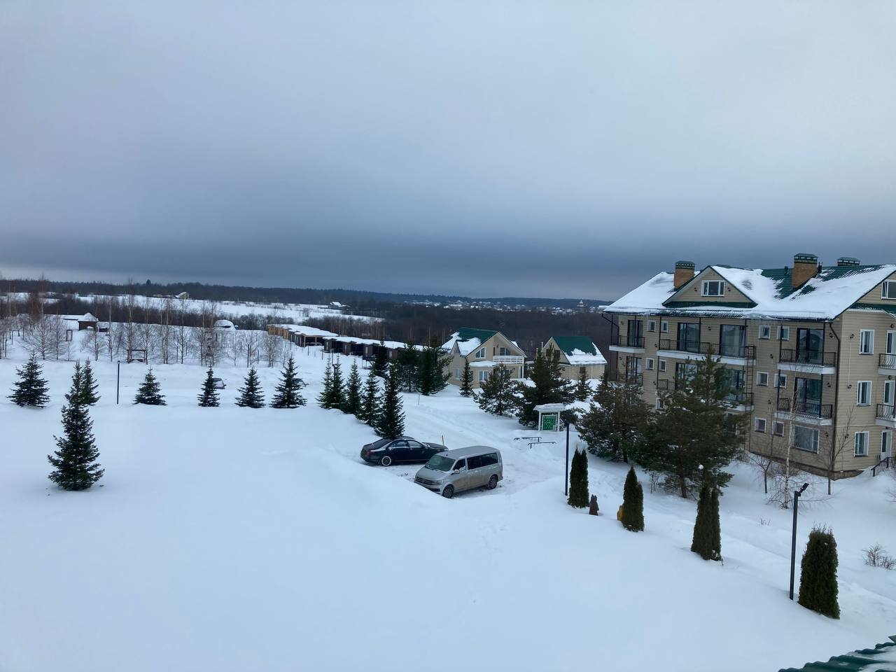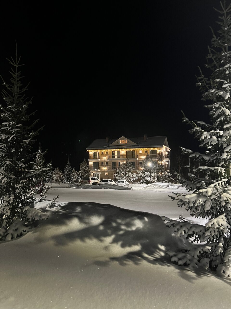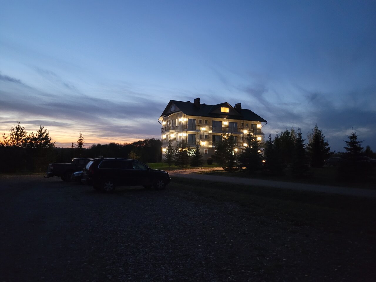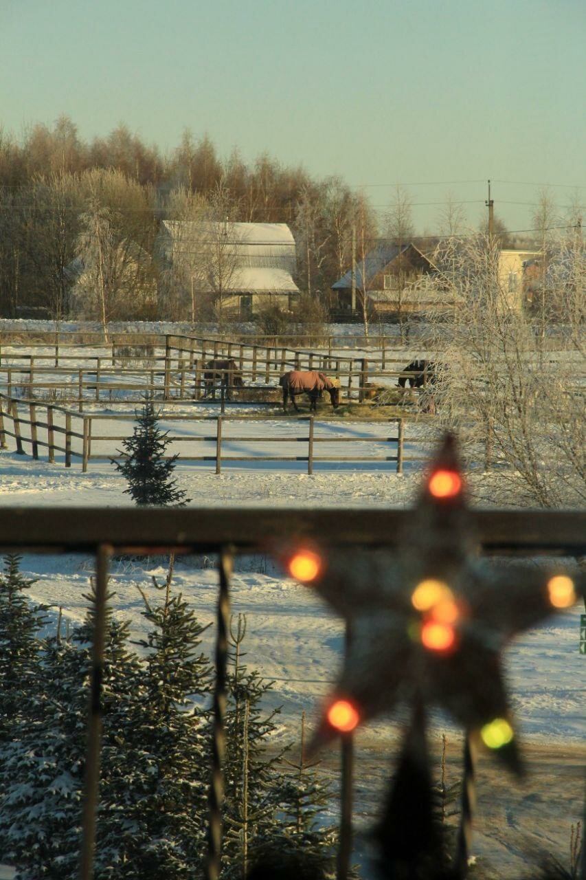 Новая гостиница, вежливый и доброжелательный персонал. Есть детская комната, ресторан. В номерах в основном здании тепло. Как всегда — не хватает вешалок/мест для верхней одежды для большого количества людей. Нет телевизора в номере — отличное решение!!! В номере холодильник, чайник, фен, мыло-гели — все основное есть. Мебель хорошая. Нам все понравилось. В конюшне прекрасные ухоженные лошади. Территория пока только осваивается. Дорога через деревню оставляет желать лучшего