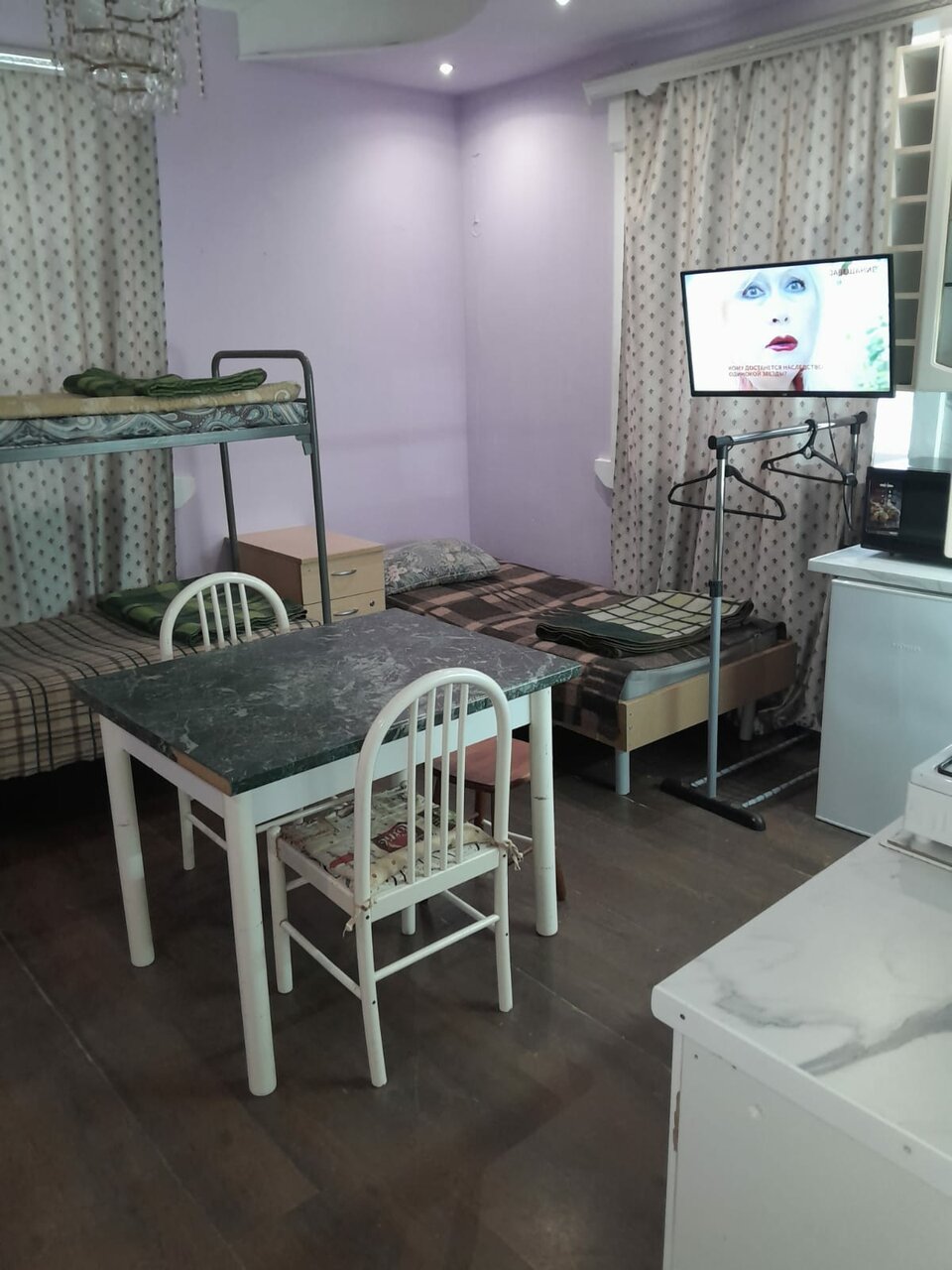 В комнате плита газовая,микроволновка,телевизор,отдельный душ,жить можно