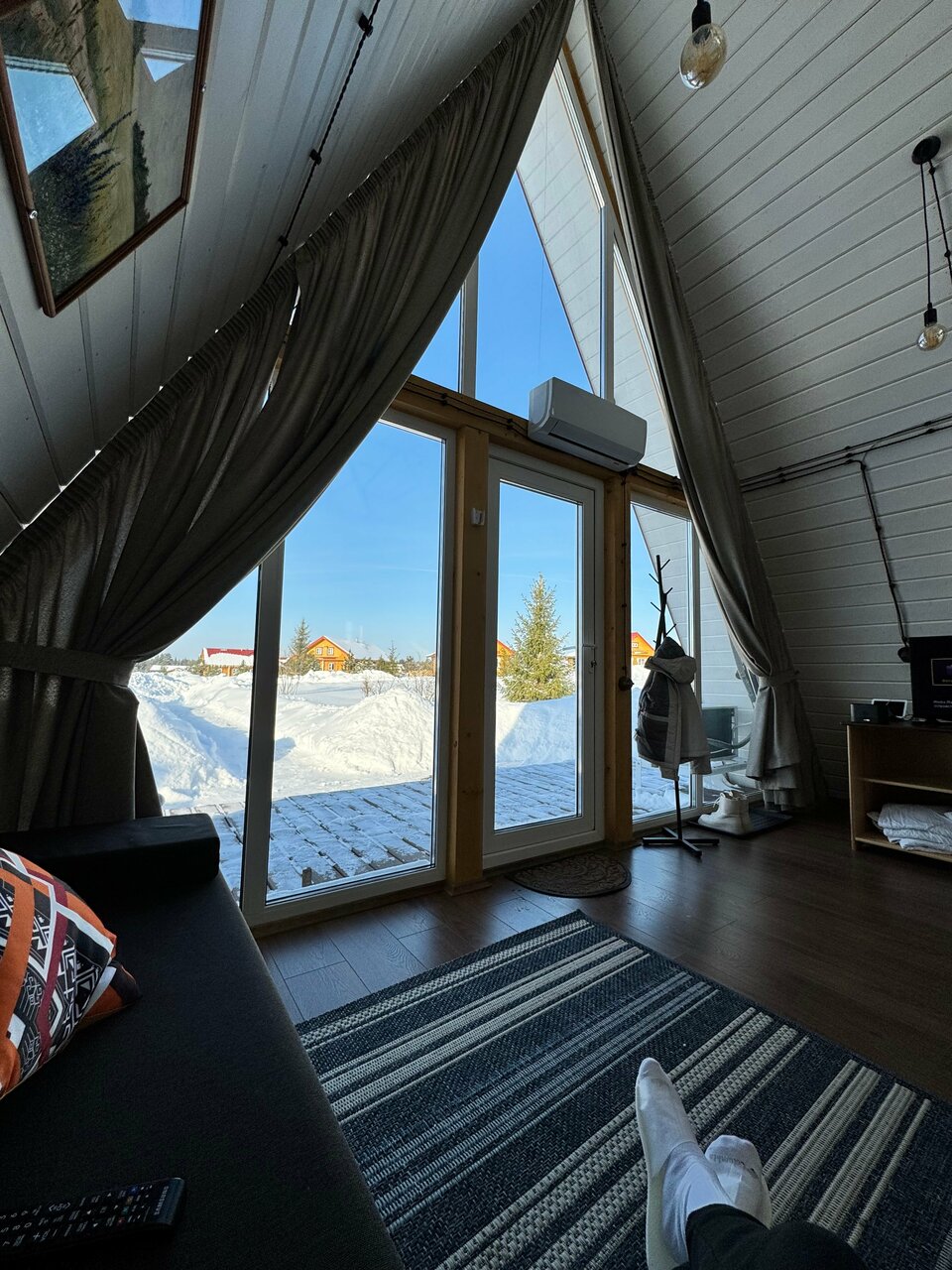 Отличное, очень уютное место. Провели здесь два дня, успели посетить конюшню, тир, сделать фотографии в стилизованной лаунж зоне, оформленной под купе в поезде. Также побывали на дегустации сыров – сыры очень вкусные, особенно с мёдом 🙂 Жили в треугольном домике – внутри очень уютно, чисто, много места. В общем, остались очень довольны отдыхом, место рекомендую!