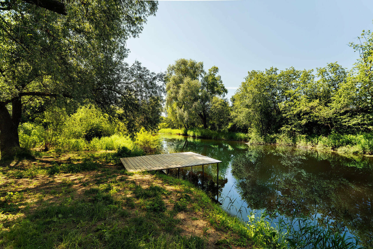 - Оборудованный пляж на реке.