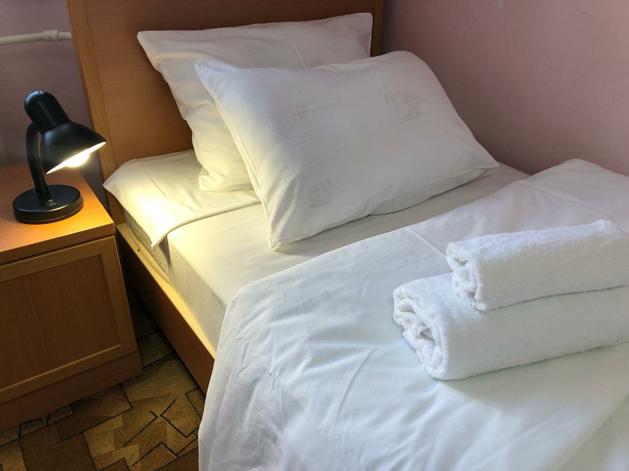 Ужасная гостиница, да и это не гостиница а вовсе. Это обычный самый дешёвый хостел. Одно радует нет клопов. Стены грязные, телевизор не работает. А ещё вам принесут мокрые полотенца и предложат просушить их на батарее. Шторы мятые. Шумаизоляция отсутствует от слова вообще, но если вы хотите всю нось наслаждаться скрипами кроватей и шумом жел.дороги за окном, то Вам однозначно сюда. Ужасный сервис