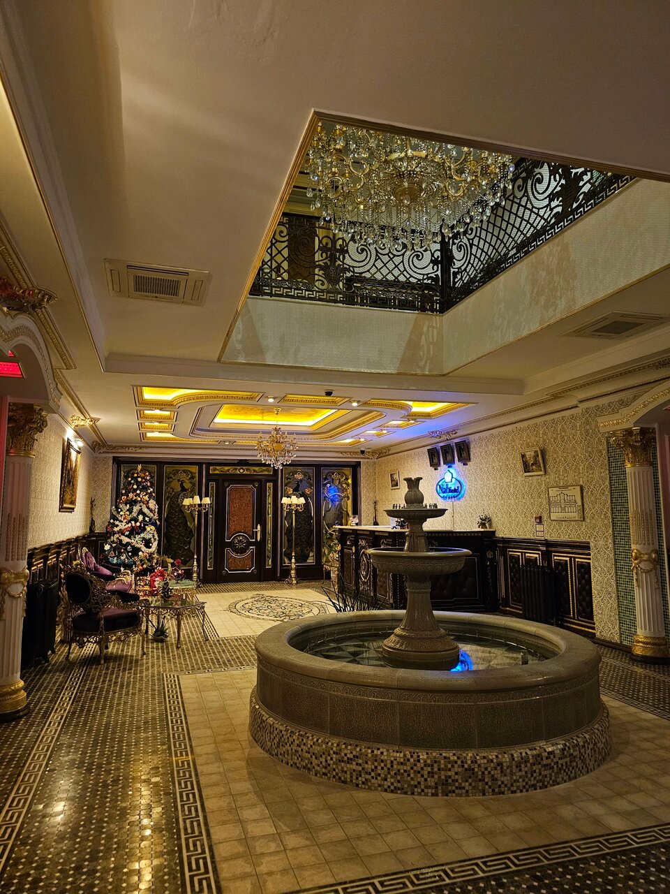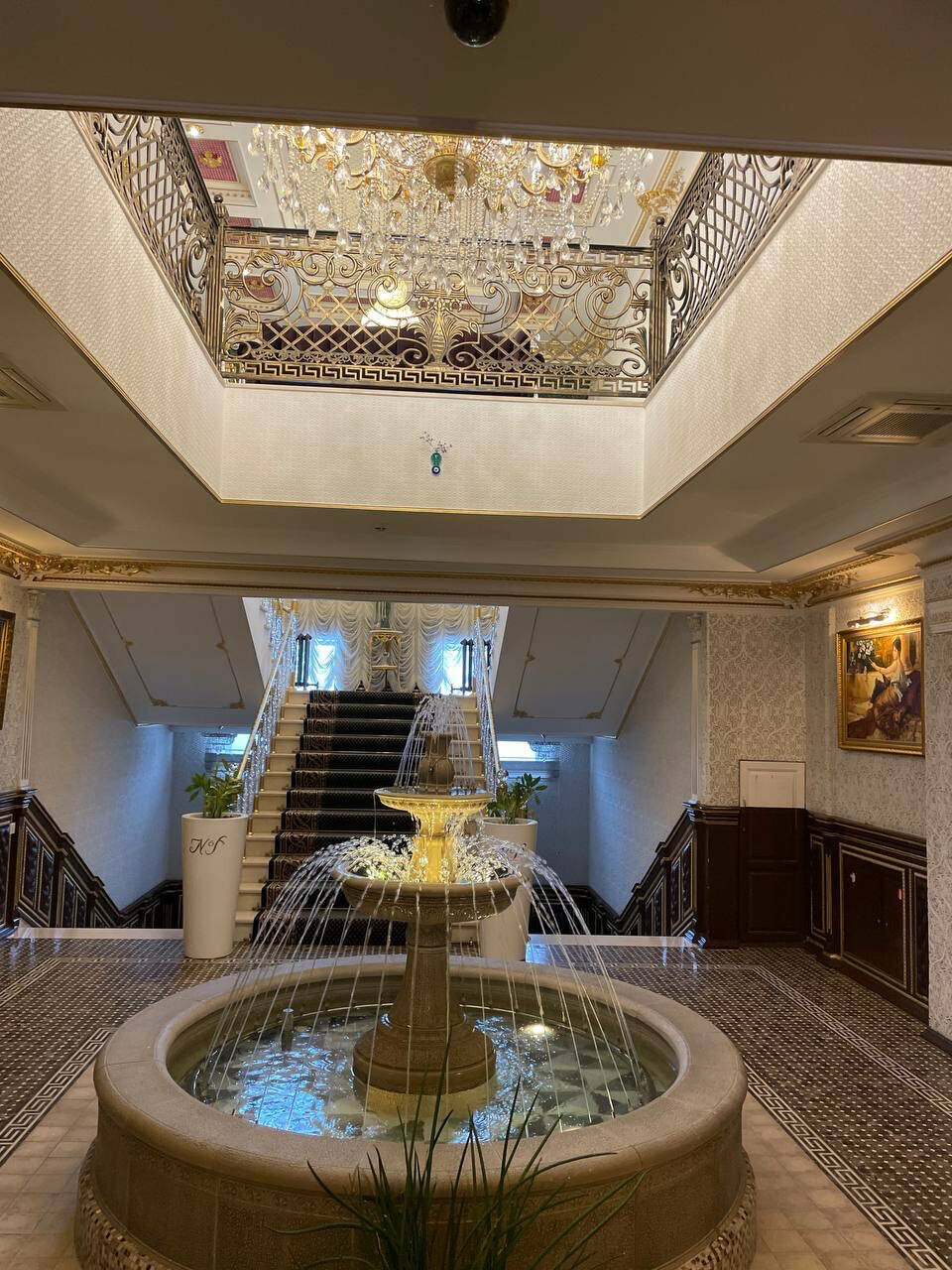 Брали купон на майские Персонал приветливый Еда на 4 — ужин по небольшому меню, завтрак у всех одинаковый Бассейн, баня, хамам, джакузи и чан работали, довольно неплохо, но в хамаме воняет плесенью, водопад в бассейне не включают, хотя он работает Касательно номера: заселяясь в номер люкс премиум 5-звездочного отеля не ожидаешь увидеть застиранный халат, ободранную сантехнику, неработающий полотенцесушитель и слив Второй комплект полотенец и халатов для спа не предусмотрен, хотя очень нужен Фото обстановки из чана и джакузи прилагаю)))