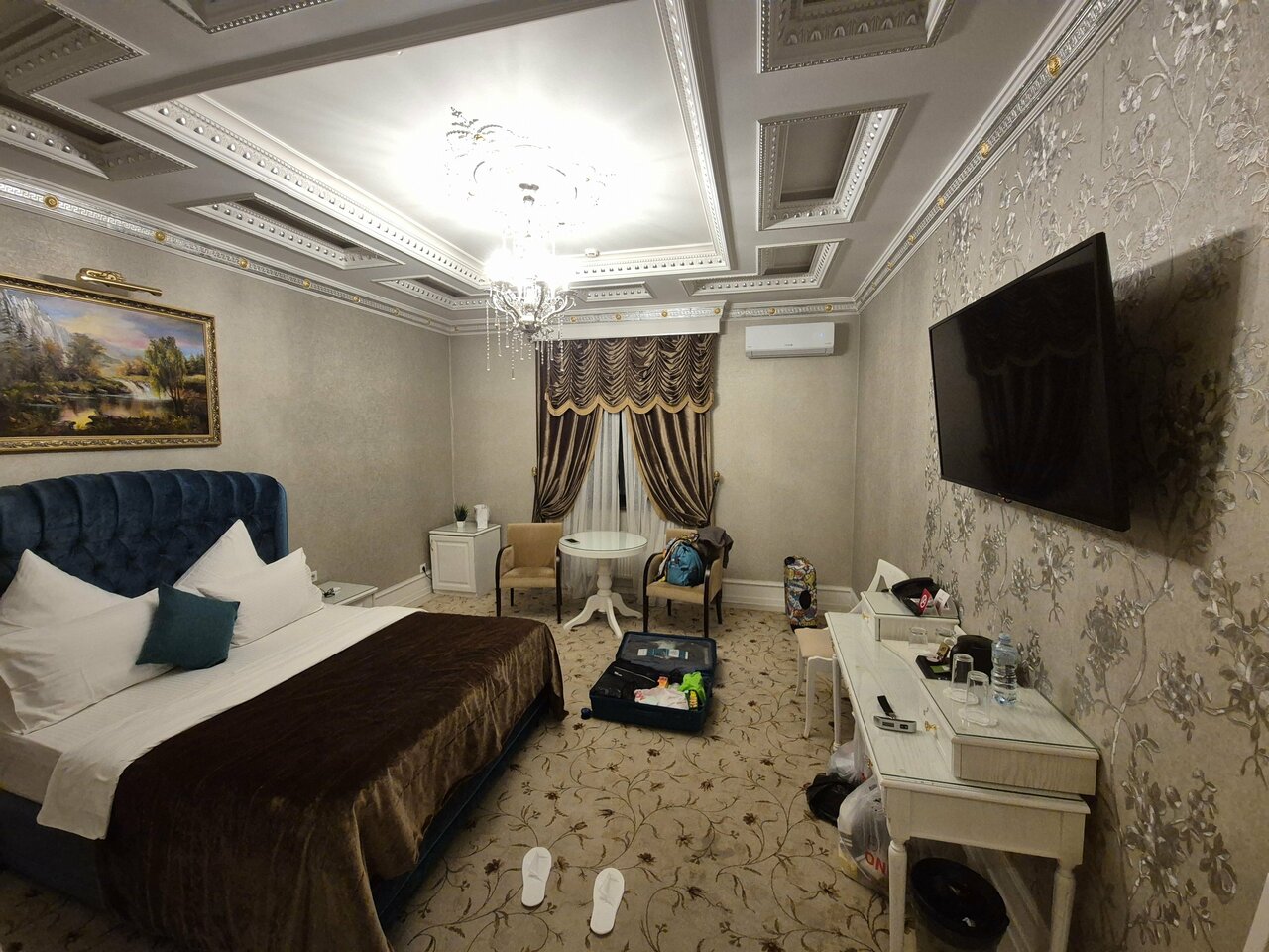 Плюсы: красивая гостиница, неплохой ресторан. Минусы: не успевают убирать номера, при заезде ждали номер. Воды питьевой нет, нужно просить в ресторане. Завтрак однотипный, по меню. Не очень чисто убрана ванна(известь).