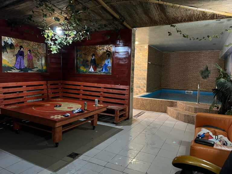 За 2 часа 2600 рублей. Мы были в номере с бассейном и финской сауной. Задача была погреться и самое главное помыться)) Сюда идти или ужратым в хламину, когда ты уже не замечаешь что вокруг или любителям провести время с дамами с низкой социальной ответственностью. Все очень грязно, в бассейне мусор, диван пора на помойку выкинуть. Дыры в стенах, видимо от пьяных компаний. Парилка еле теплая. Везде пятна, потеки Антураж 90х. Стремно даже присесть куда то, не говоря уж про то, чтобы лезть в бассейн. Но самый атас, это туалет, в котором было на*рано, администратор извинился, спасибо, но сути дела это не меняет Отсидели час с горем пополам. Крайне настойчиво не рекомендую. Но помылись, была горячая вода, за это одна честно заработанная звездочка) видимо из за отсутствия конкуренции, или потому что это заведение именно для тех о ком я написала выше, там все так
