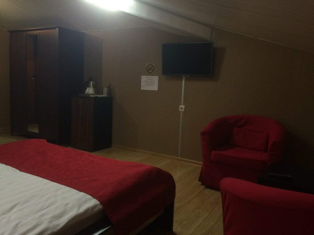 Отличное место! Отель находится в деревне. Чистый воздух, тишина! Для отдыха после шумного города и долгой дороги. Мы себя почувствовали как дома… Номер двухкомнатный для семьи из трех человек-отлично! Своя кухня со всеми необходимыми делами)) Санузел и душевая в ‘квартире’. Горничных не замечали, но уборка была ежедневная. Все чисто! Спасибо вам! С телевизором проблем не было (как тут писали), работает через приставку. Девушки нам любезно все показали, объяснили, как пользоваться техникой. Обязательно приедем снова! Процветания Вам!!!