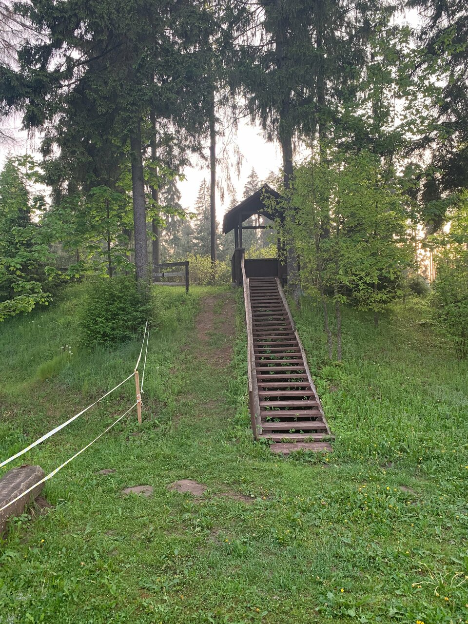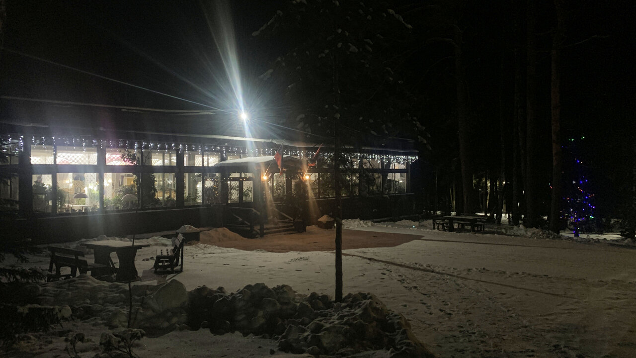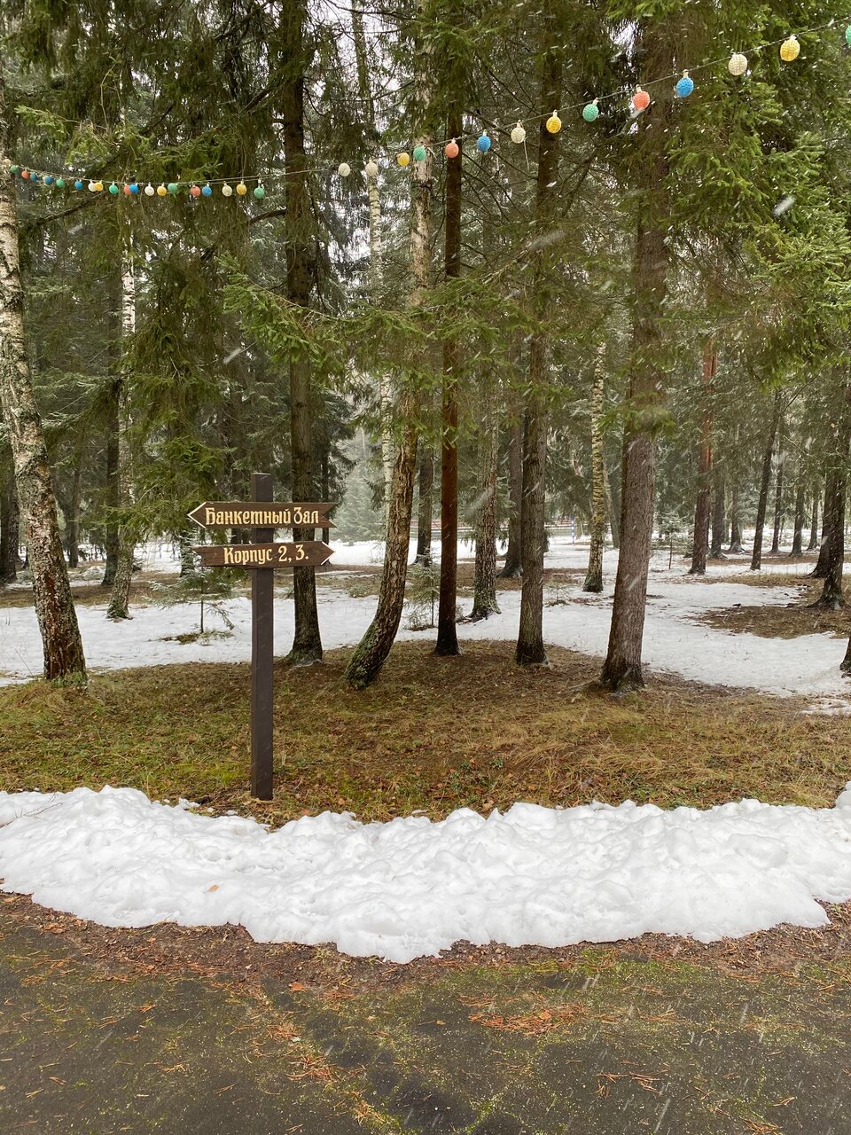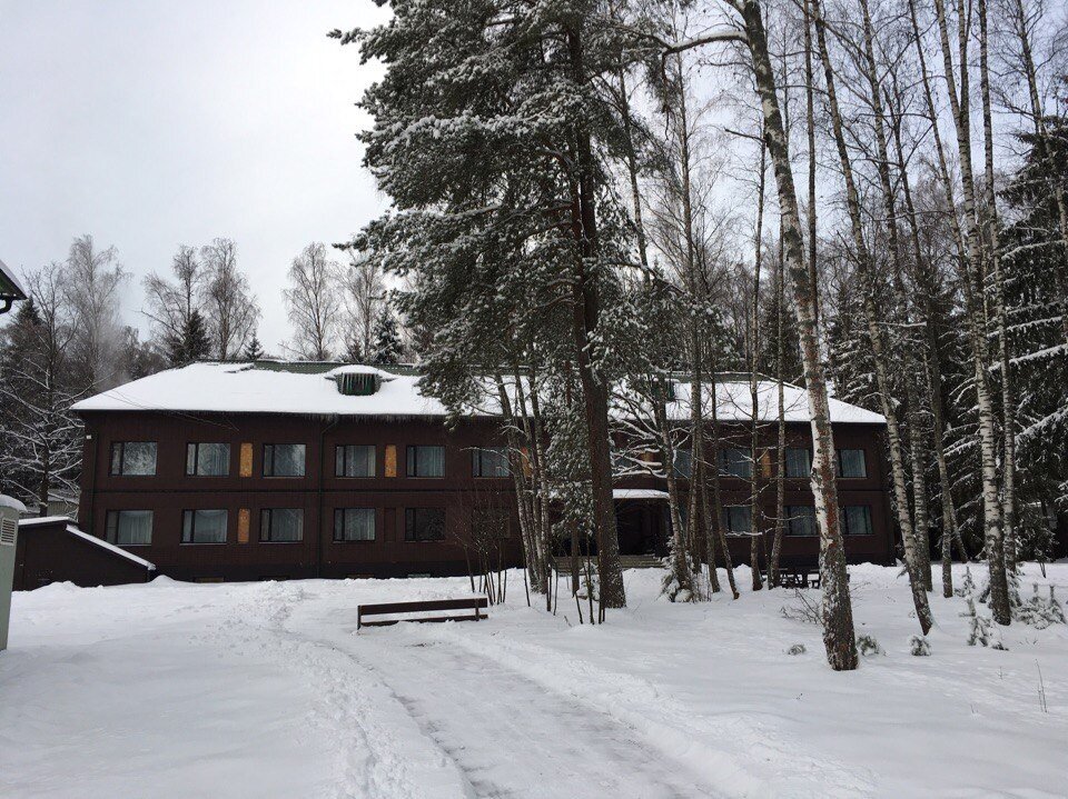 При входе вывеска Пансионат. Все супер похоже на летний лагерь в школе. Есть несколько корпусов. Один типа хостела, то есть общий душ, туалеты и кухня. Здания не новые. Столовка классическая. Еда 50/50 Лес красивый и воздух свежий — это да. Хвойные деревья растут. Речка рядом. Насекомые в комнатах, таракан на подушке Во дворе столы и лавочки деревянные. Вода горячая есть. Впечатления: ну такое себе. Заселились сюда только из-за вынужденной остановки