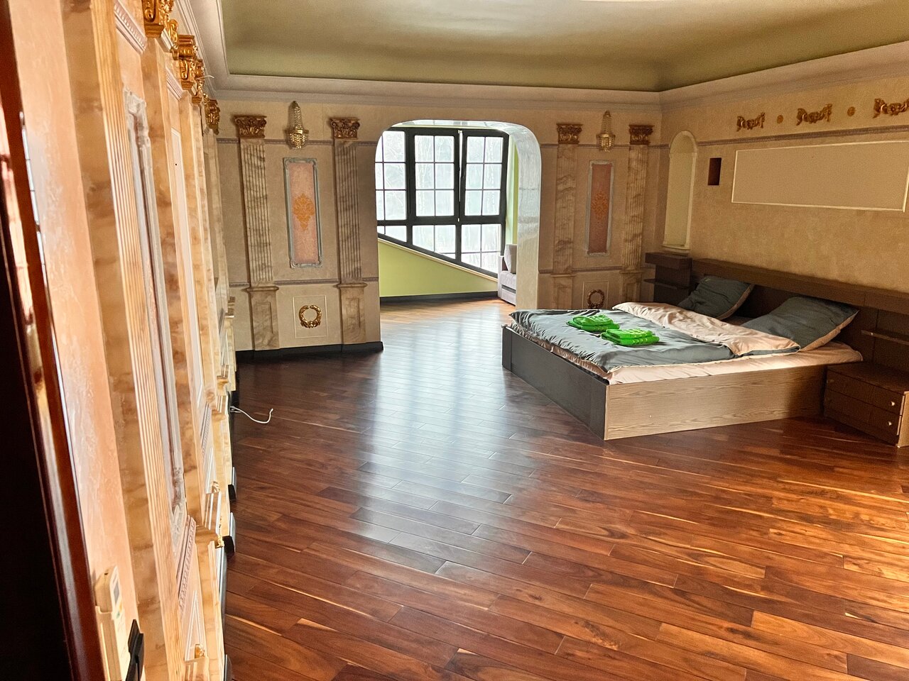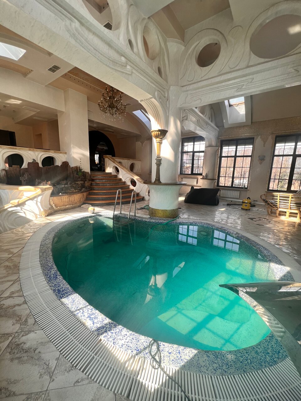 Не все соответствует фото. Очень непонравились точащие из стен провода (в некоторых местах даже без изоляции), матрасы с пятнами и бассейн вызвал большие подозрения. Мы не рискнули заходить… А еще есть правило мыть за собой посуду, при этом была посудомойка, но она, как нам сказали, не работает. Мастер приедет чинить завтра после 15.00, а выезд до 12.00. После небольшых дибатов, подошел человек и просто включил ее в розетку и ЧУДО, она оказывется в рабочем состоянии. На кухне мало посуды: кастрюля одна, ни одного салатника и блюдец тоже нет. 4 звезды за атмосферу и первоначальную задумку… НО все уже требует косметического ремонта и новой мебели. А еще на 3 этажа 2 туалета, 1 душевая и из 3х раковин в одной засор