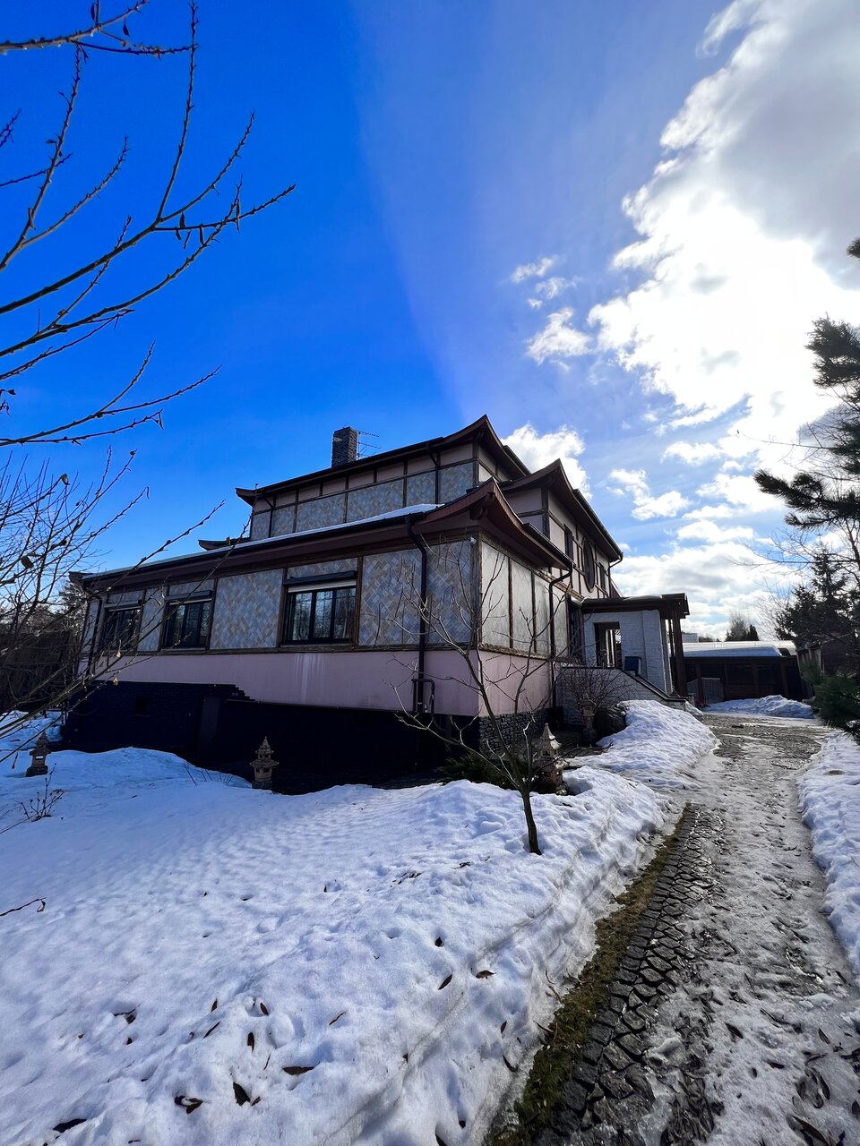 нестандартный дом (который самый большой, речь только про него), очень красиво снаружи и странный внутри, всё уже протертое от постоянного использования. но как дом для огромной компании — подошел отлично