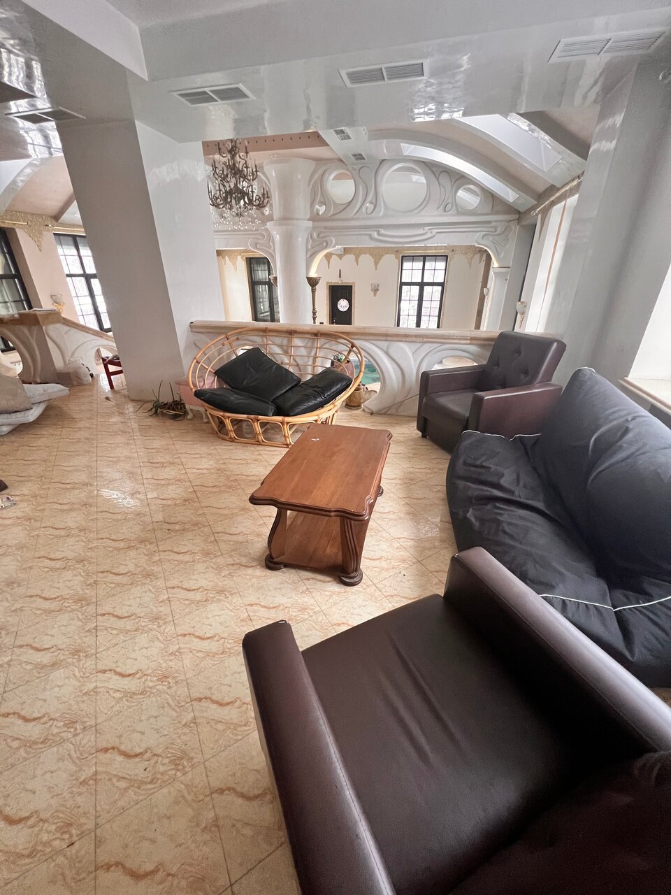 Побывали в доме на дне рождении. Дом со странным для меня интерьером и планировкой, много бесполезного места. Спасла только зона кухи и гостинная, уместились все. Спальных мест мало, а те что имеются в неудовлетворительном состоянии. Розетки еще поискать надо. Из окна вид на ‘горы’ (действующая свалка). Под детской зоной подразумевается просто этаж с рисунками джунглей на стенах. Дом явно требует ремонта и смену декораций. Есть сауна и бассейн без подогрева, вода +19. Возвращаться желания нет.