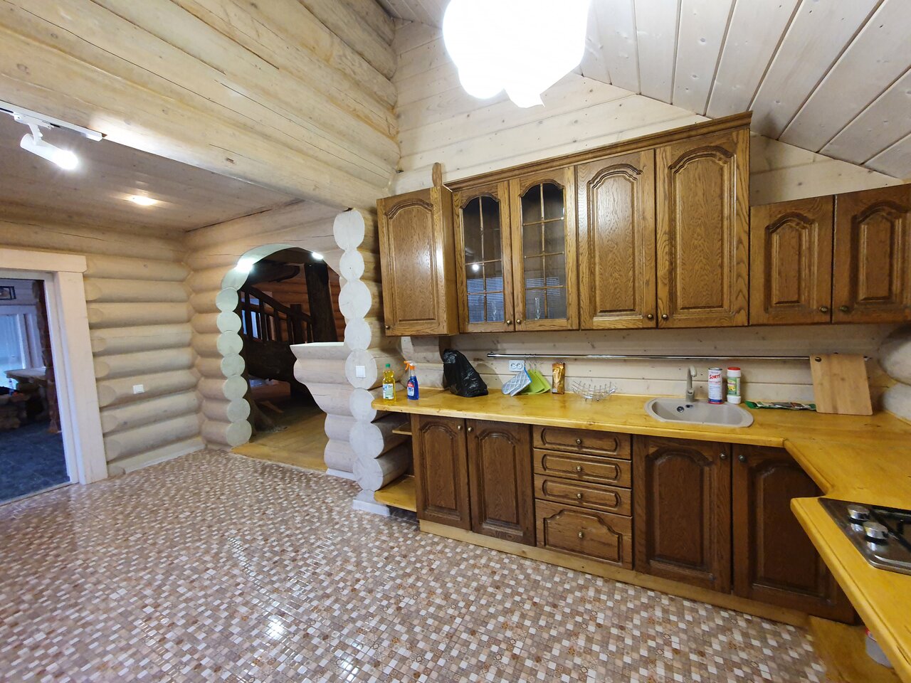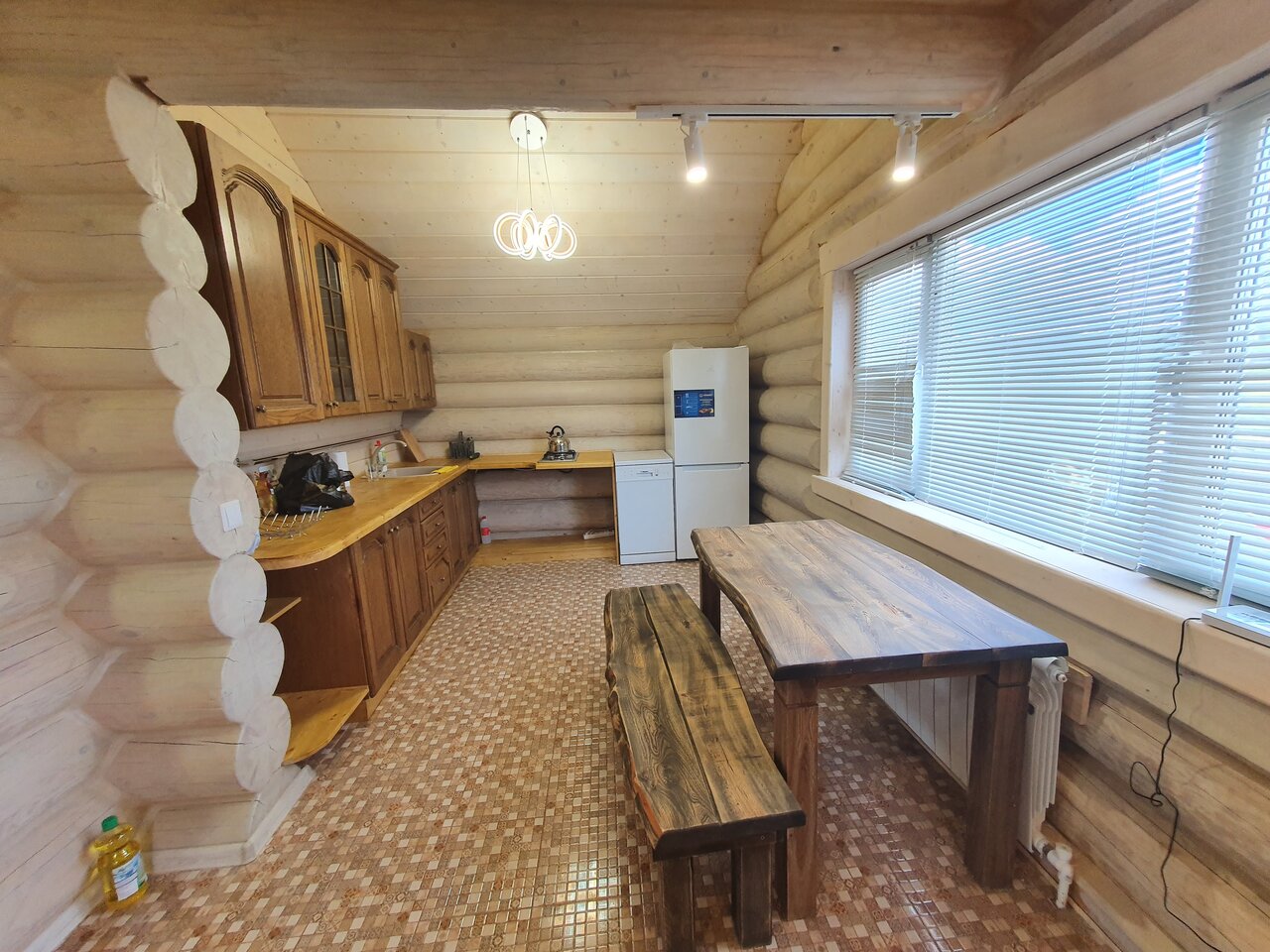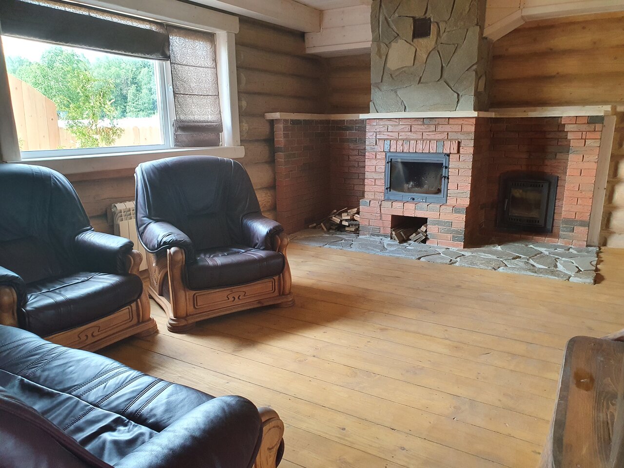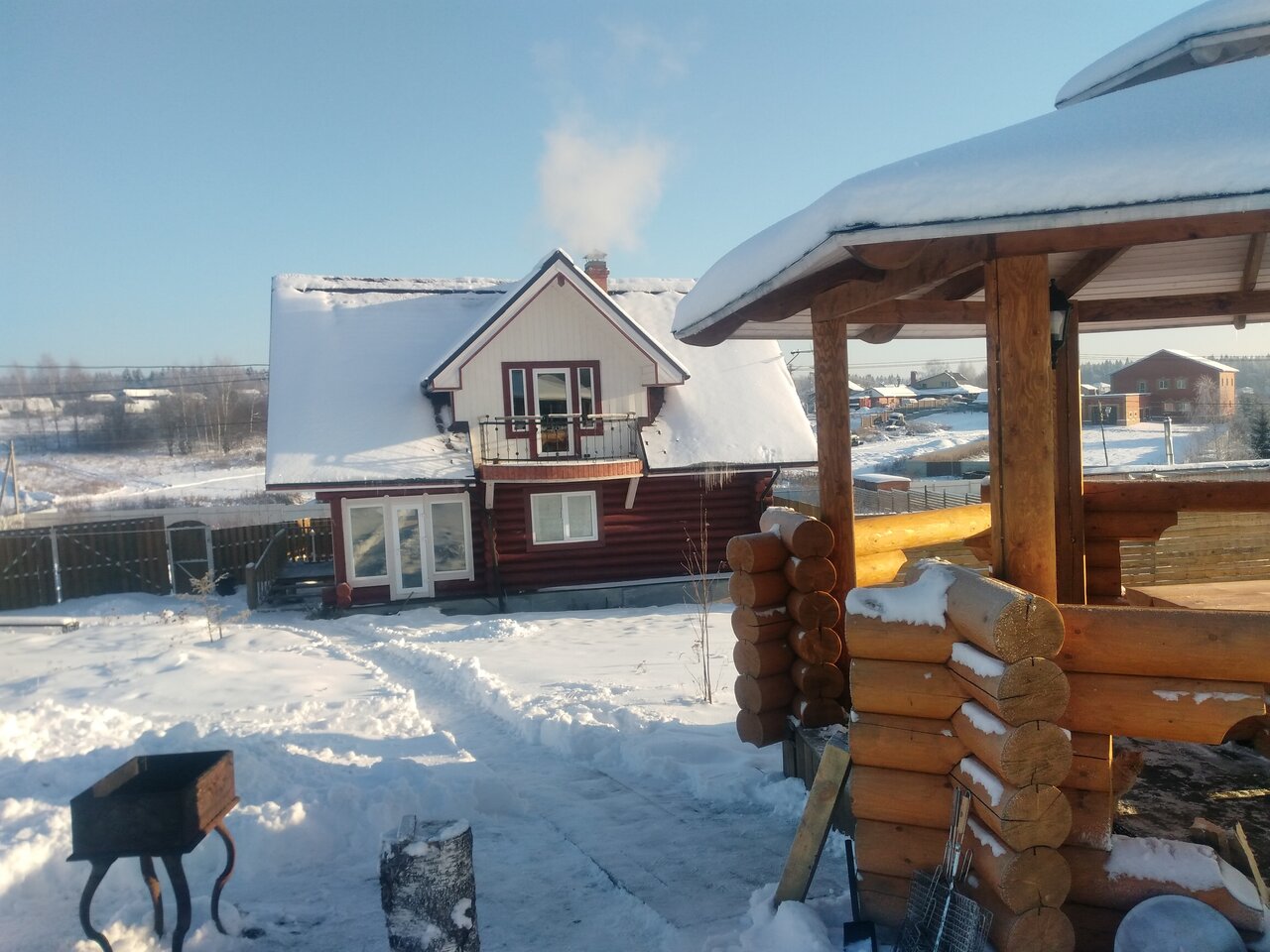 В целом все хорошо, баня, сам дом, наличие территории, много дров. Из минусов — зимой замерзает вода на первом этаже (кухня, душ), утром нужно растапливать пушкой санузел 1.5 часа, чтобы пошла холодная, на втором этаже все в порядке. Хороший интерьер.